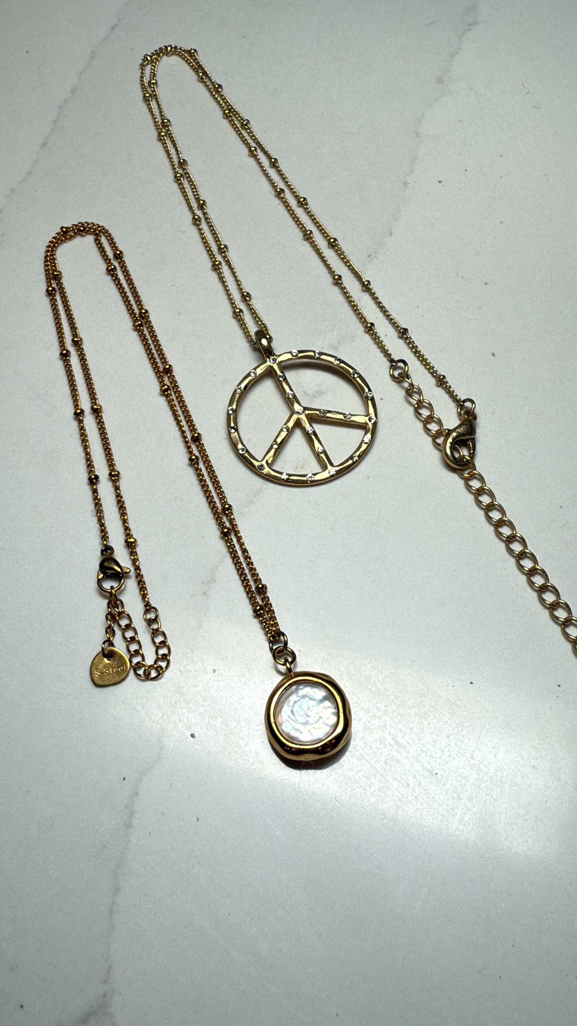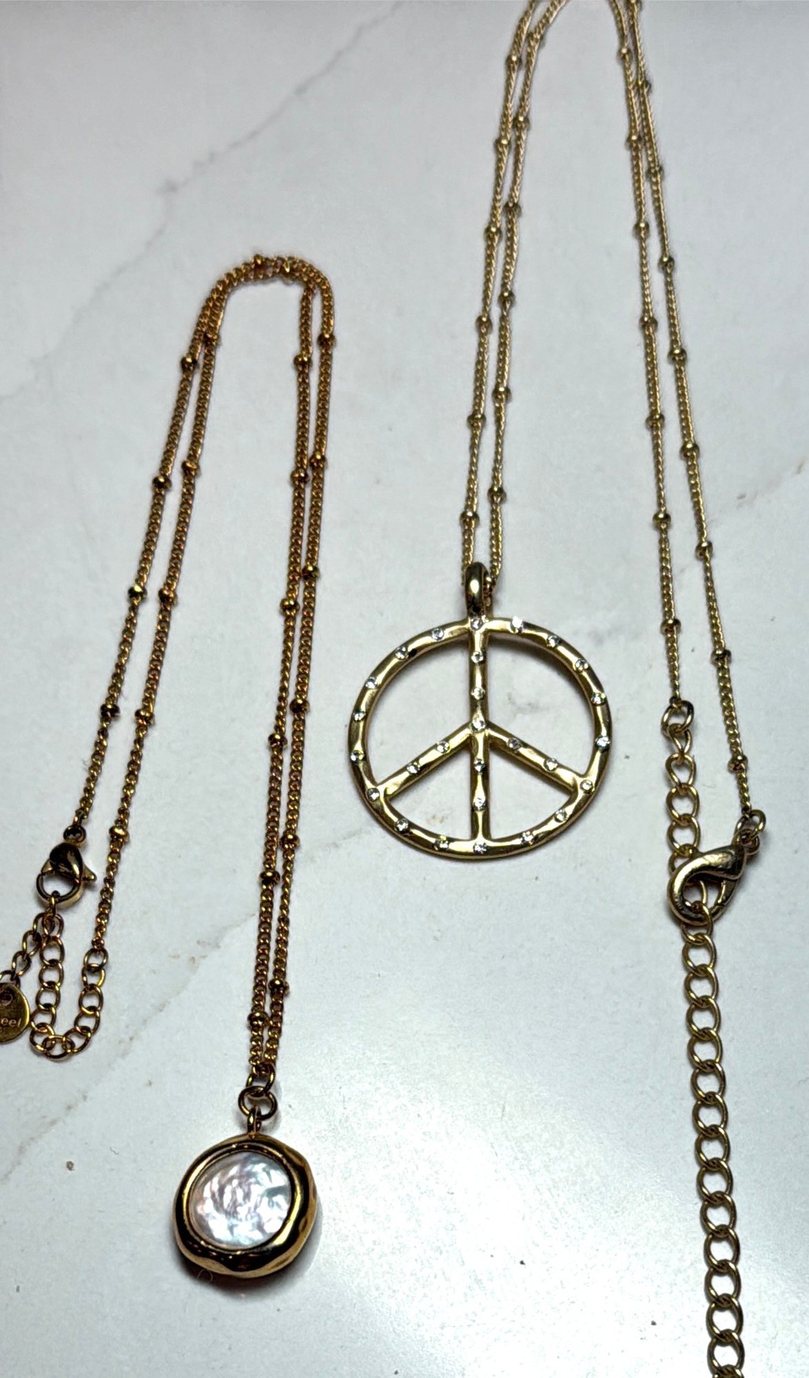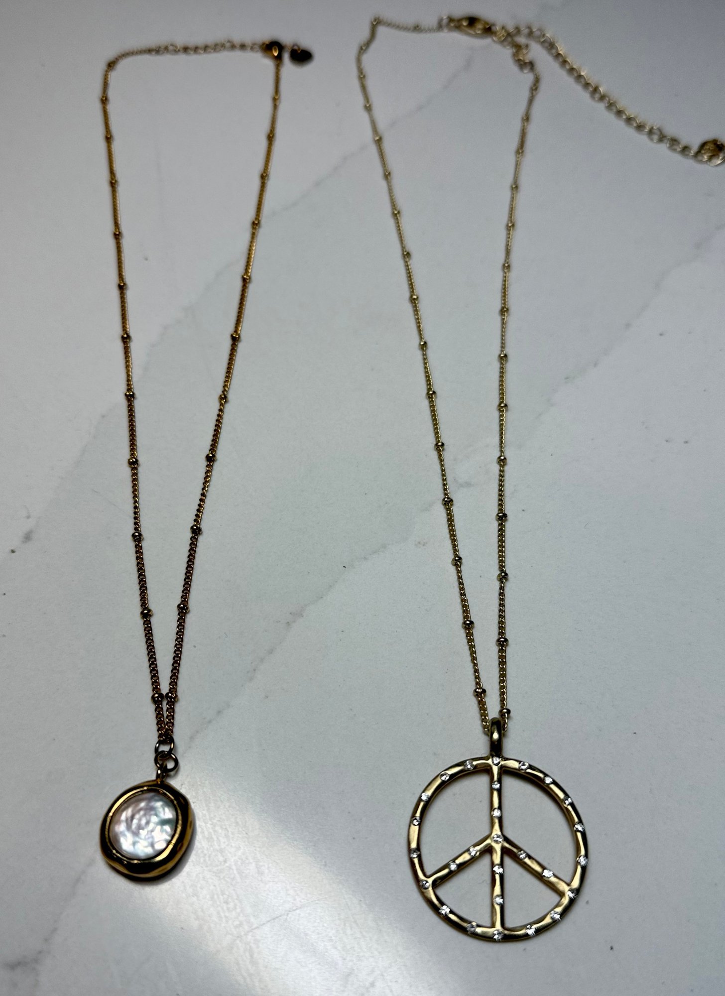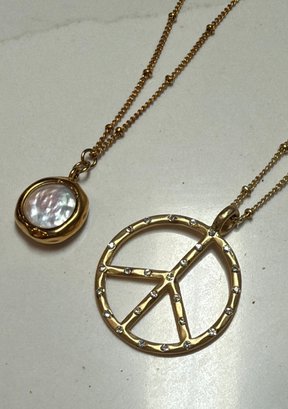Dainty Pendant Necklaces X 2, Peace Sign And Fresh Water Pearl