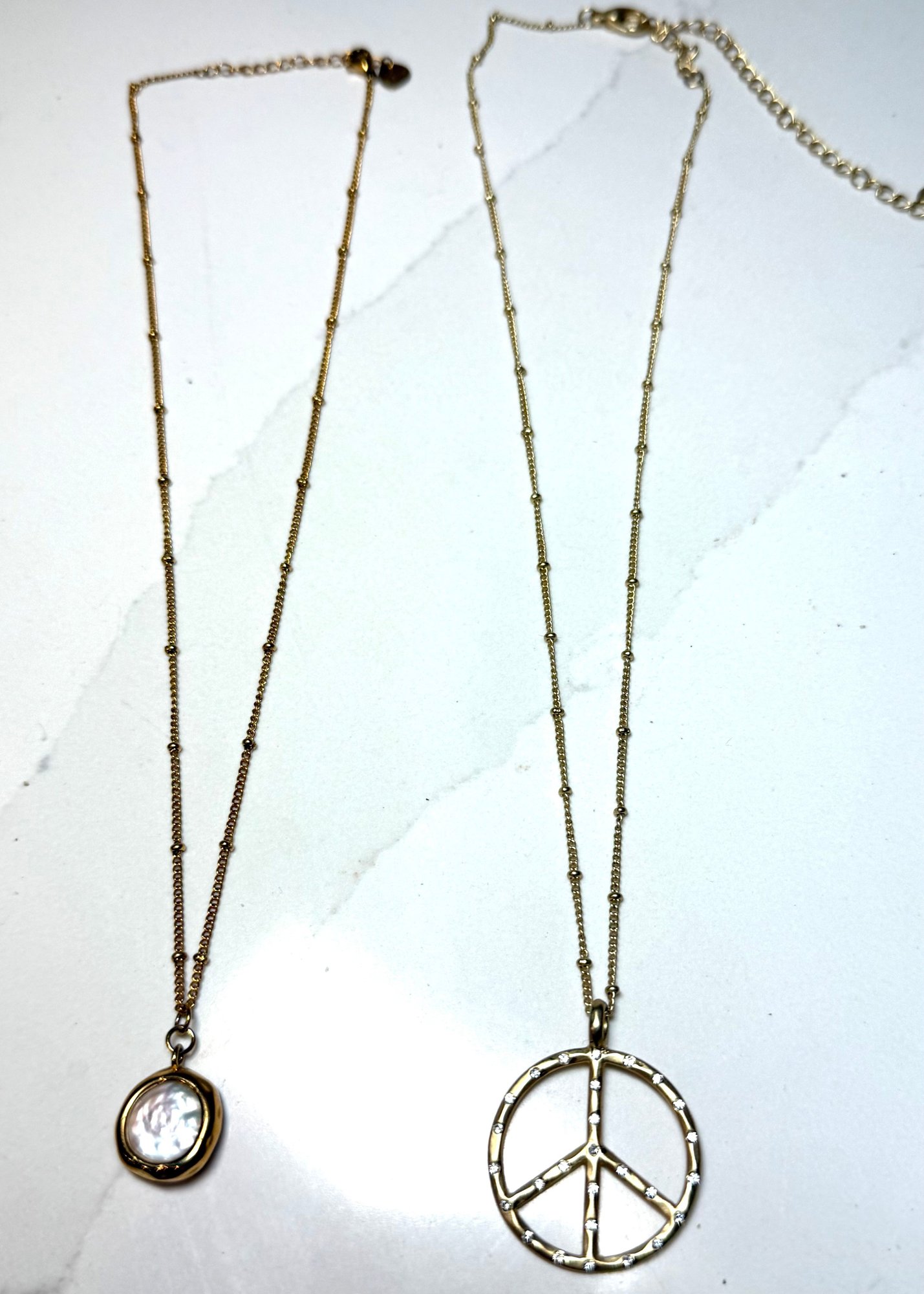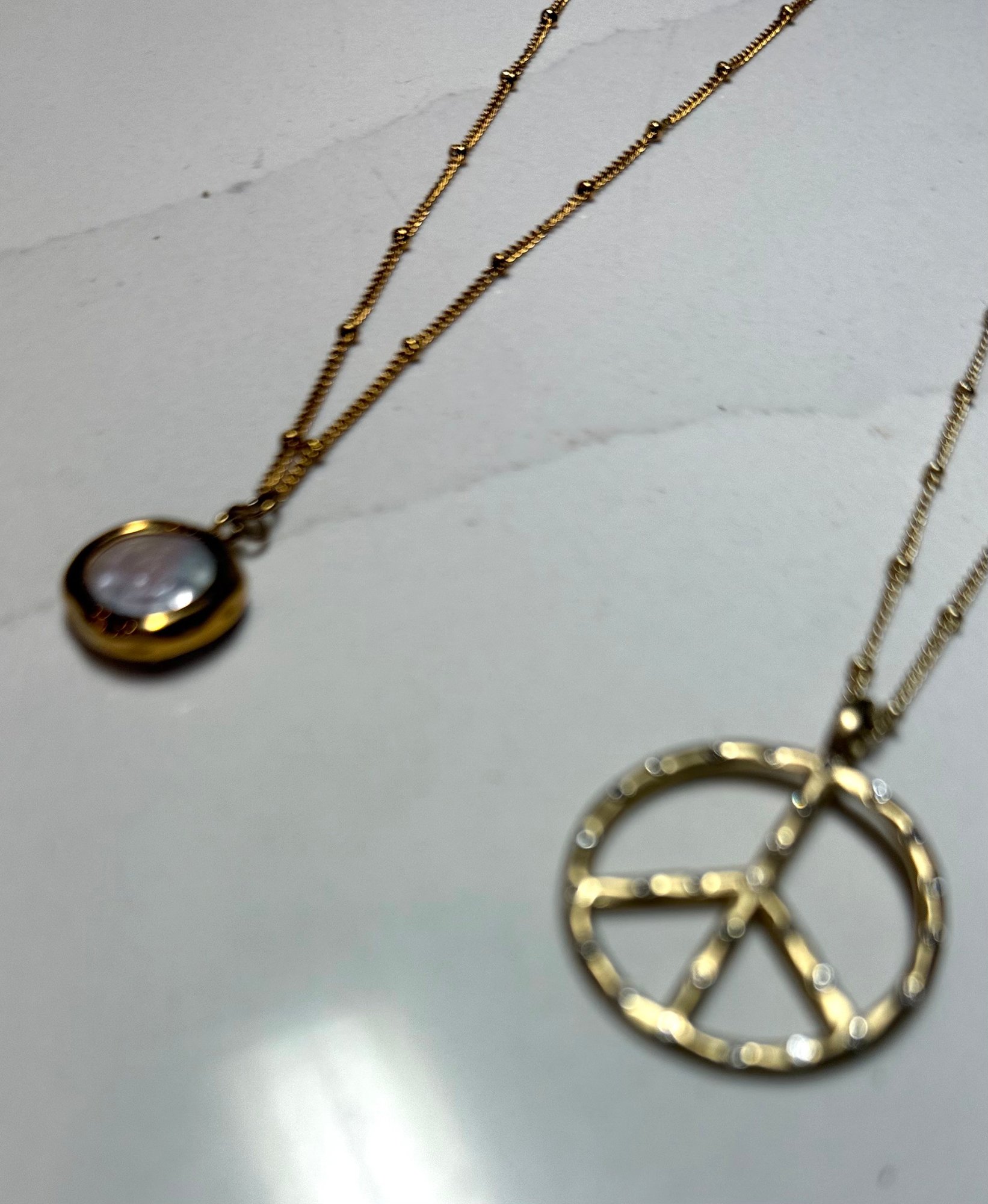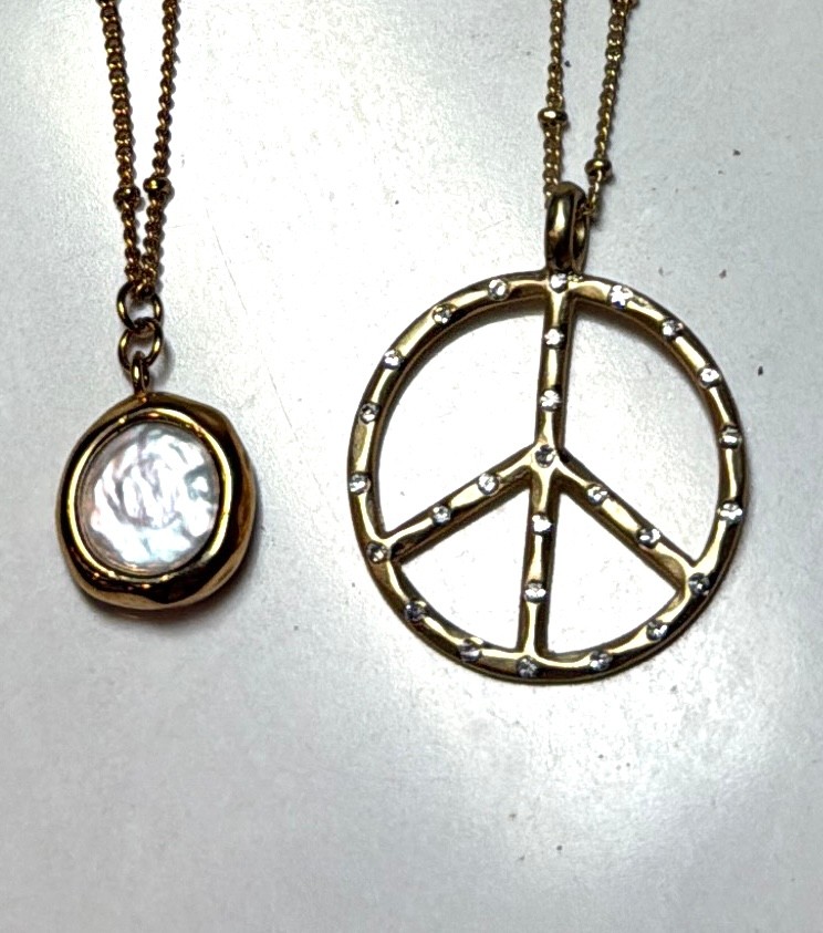 Dainty Pendant Necklaces X 2, Peace Sign And Fresh Water Pearl