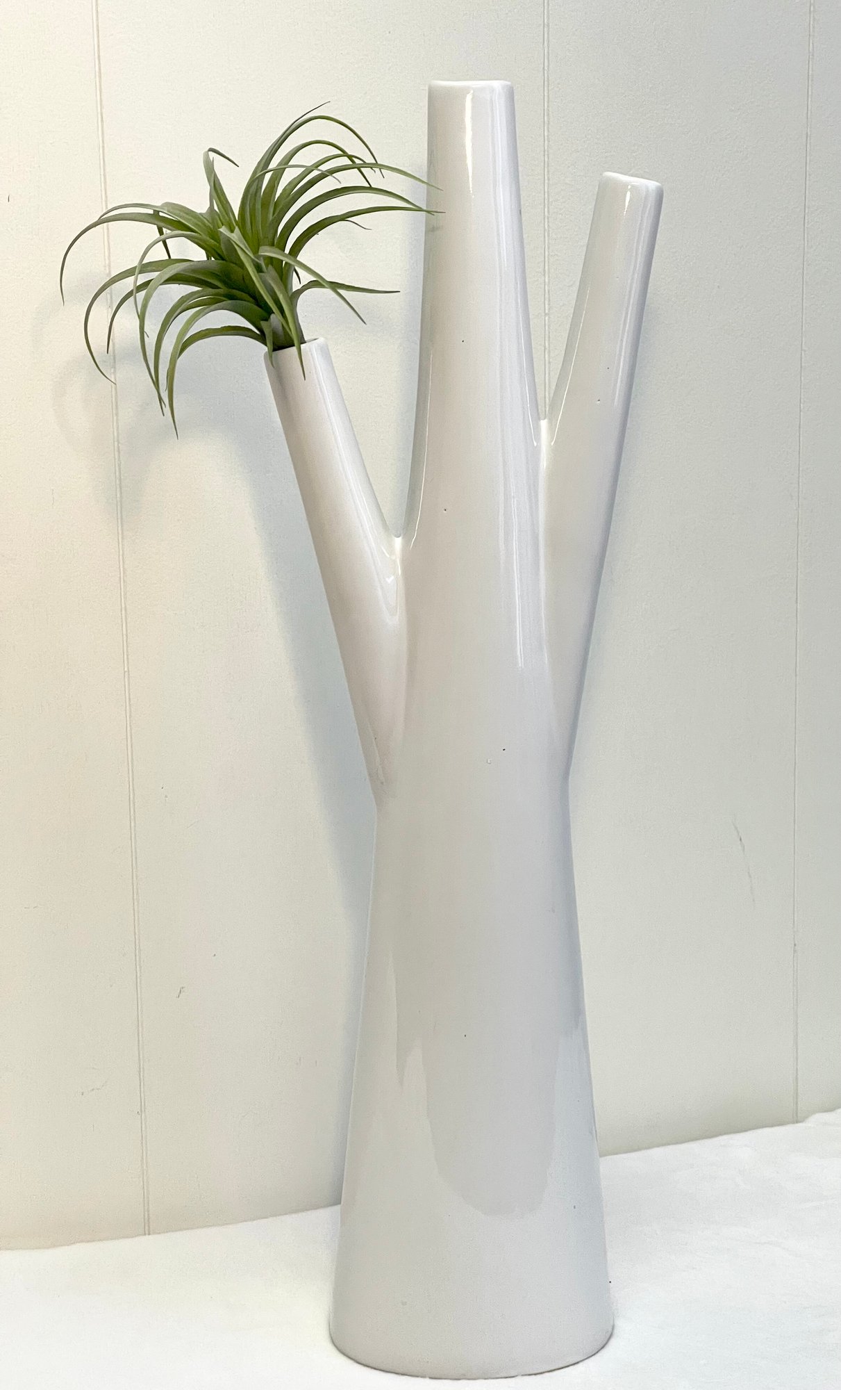 Designer Vase: In The So Of Lignet Roset "Roseau". Glossy White And Tall. 22.5 High x 7 wide