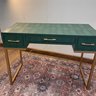 Emerald Green, faux snakeskin, home office Desk W/ Three Drawers And Gold Base And Hardware.