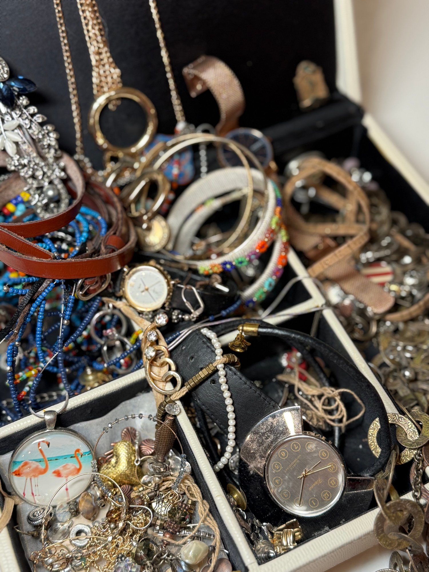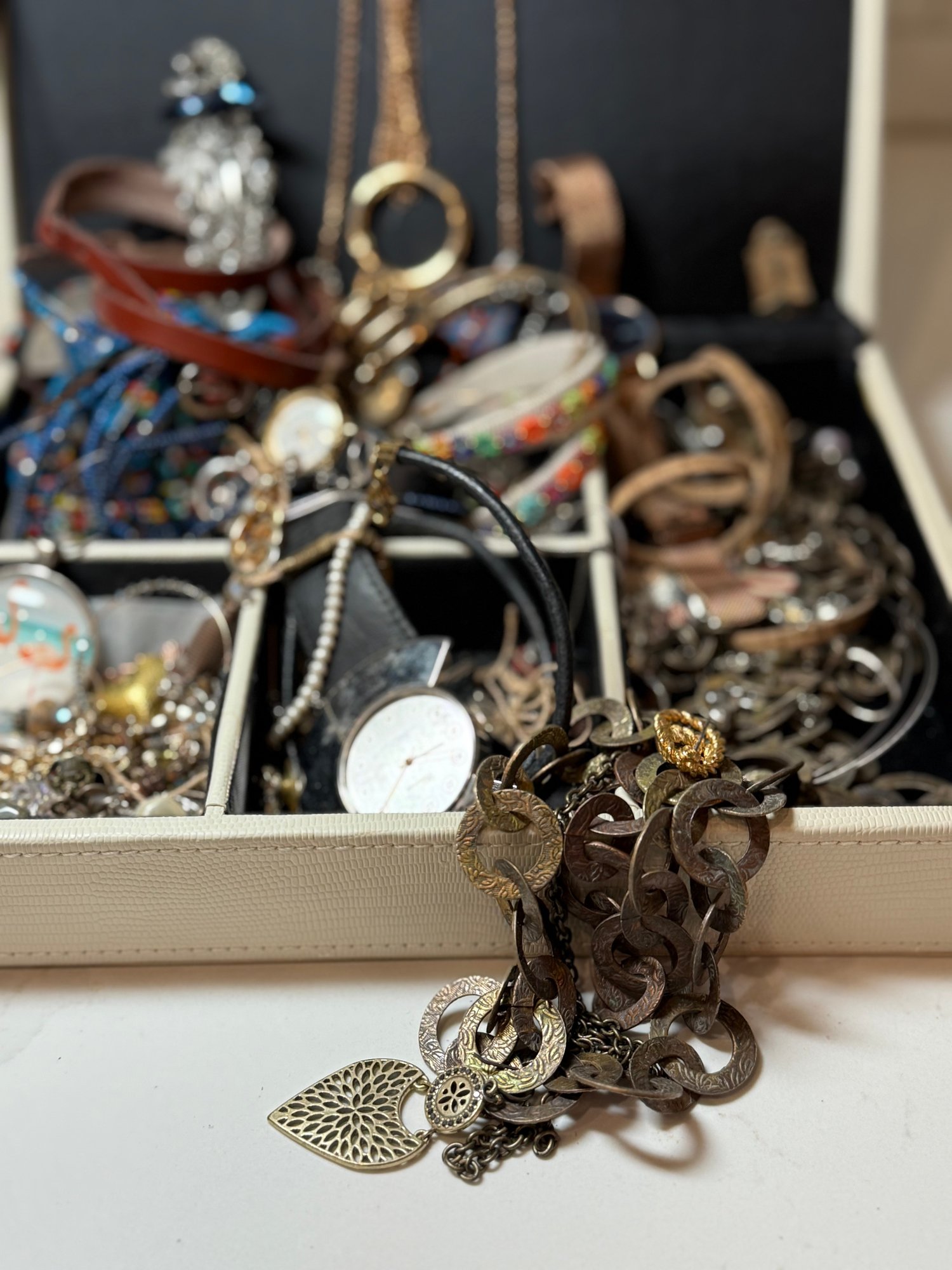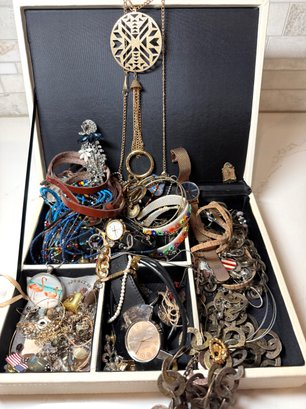 Fabulous Leatheretts Jewelry Box Filled With Goodies And Treasure. Mostly salvage but also treasure!