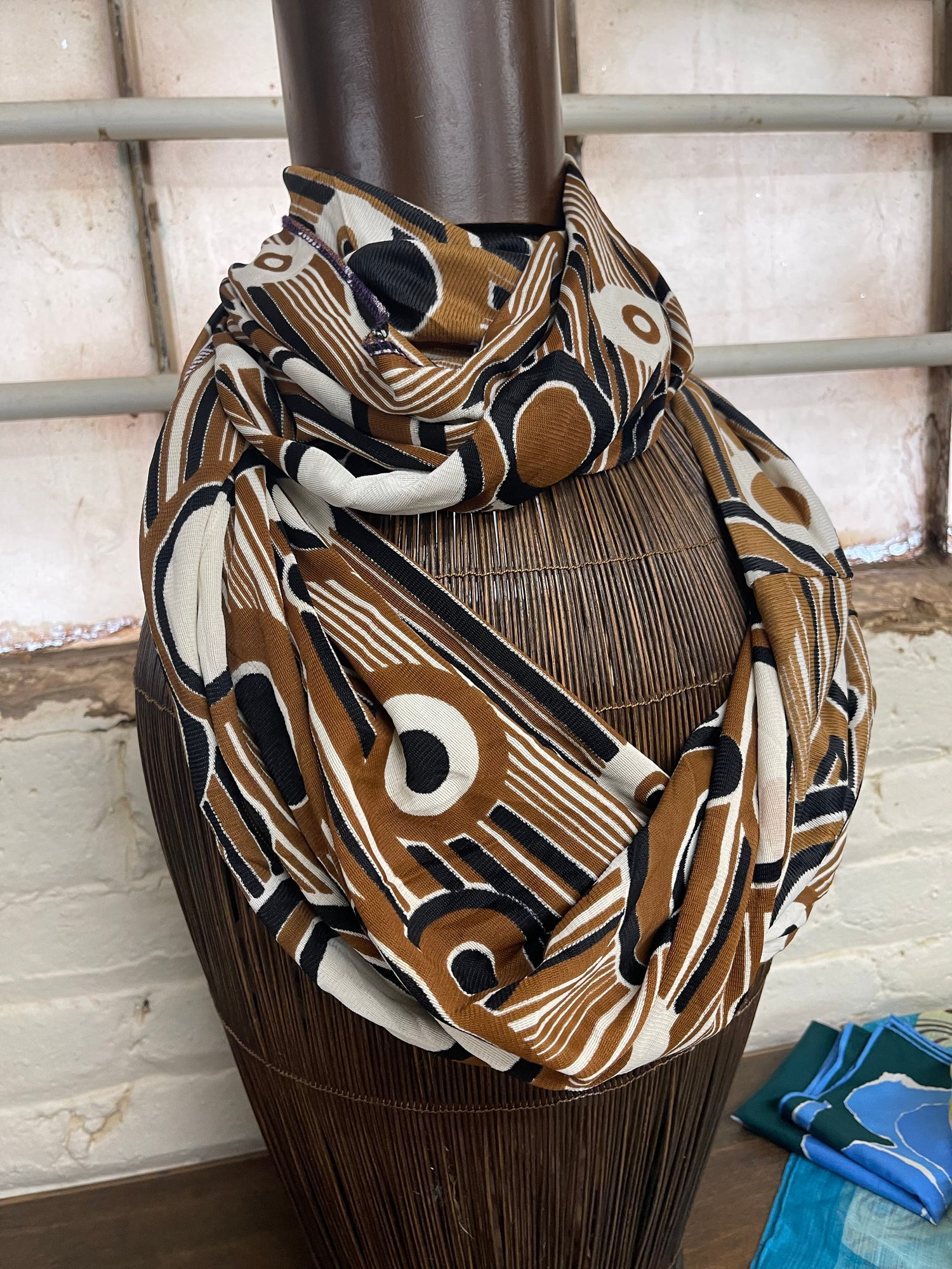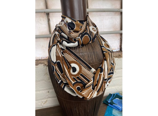 Emerald 21 inch square with bright blue floral ( VERA). Sheer Turquoise with graphic lime geometric design, 60 x 20. Retro chestnut black and white infinity 32 wide x 70 circumference, and sheer olive lime Animal print approx 36 inches square. Perfect addition to spring wardrobe≥