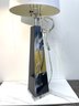 Funky/Cool Mid Century Modern, Artsy Lamp. 32 high, 5 x 5 lucite base, paneled and black glossy sides
