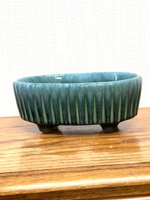 Hull U.S. A. Pottery, Fabulous Blue Green Drip Glaze F39 Oval Footed Dish.
