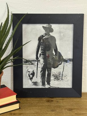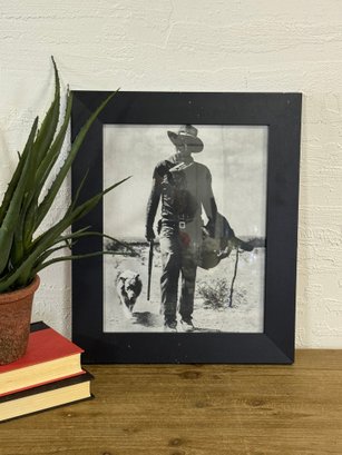 John Wayne With A Dog Black & White Framed Art approx. 18 x 14 inches