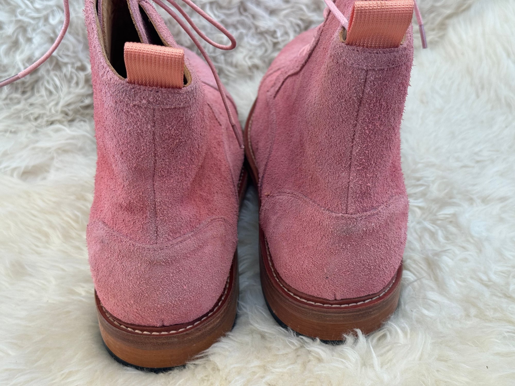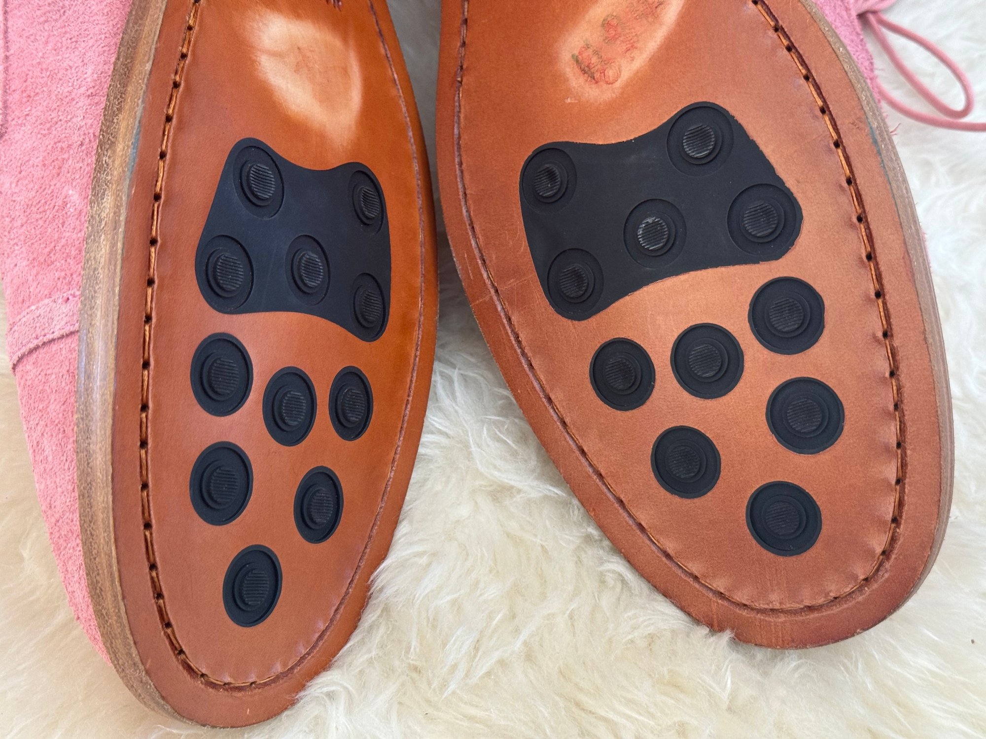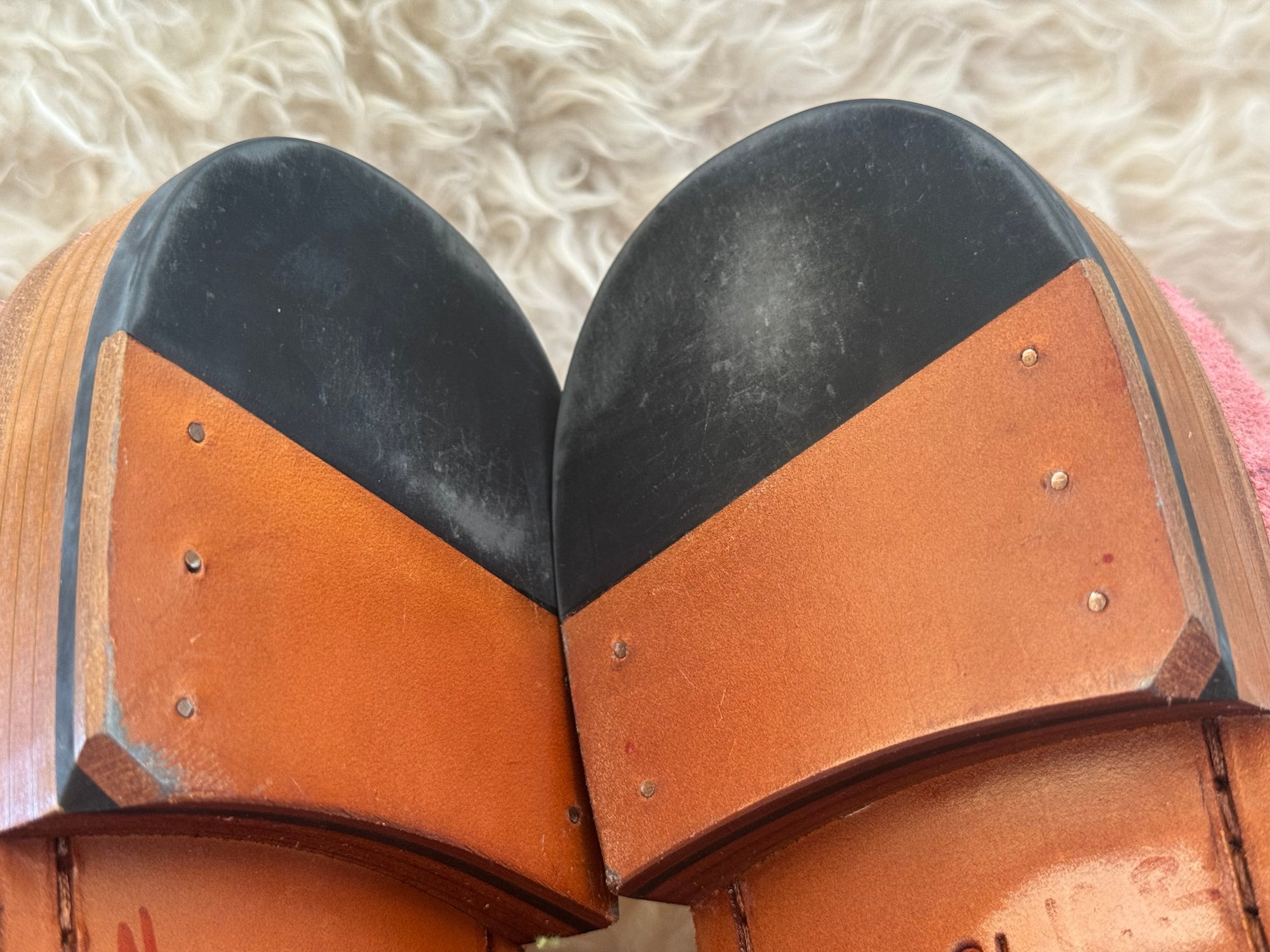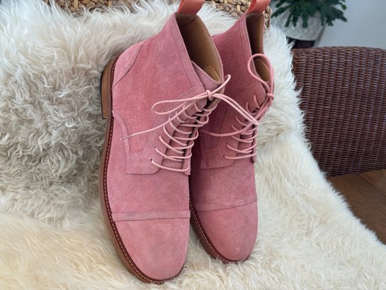 Appear to be suede and leather see pictures but in overall very nice condition and do not appear to have been worn. Very well made