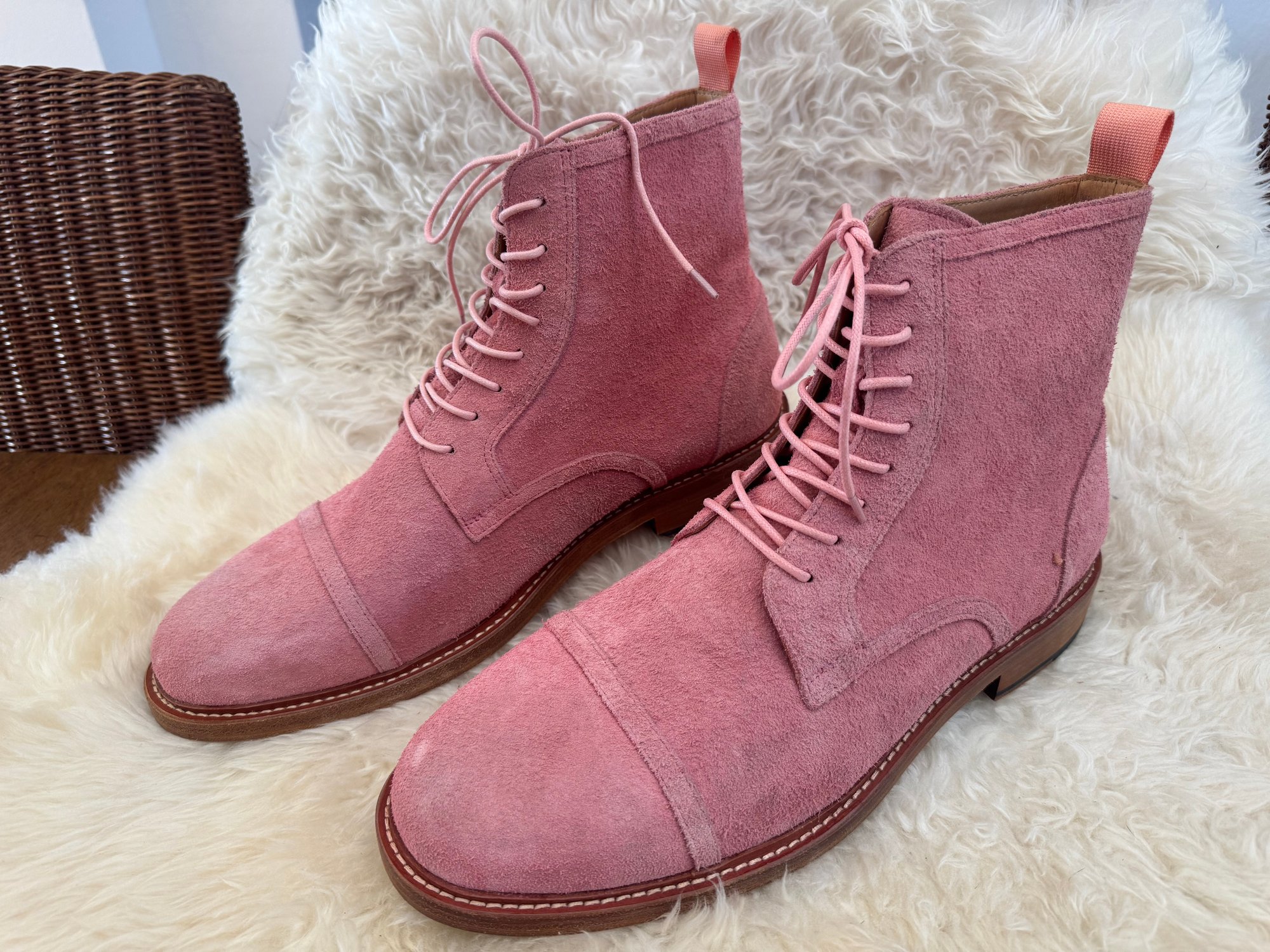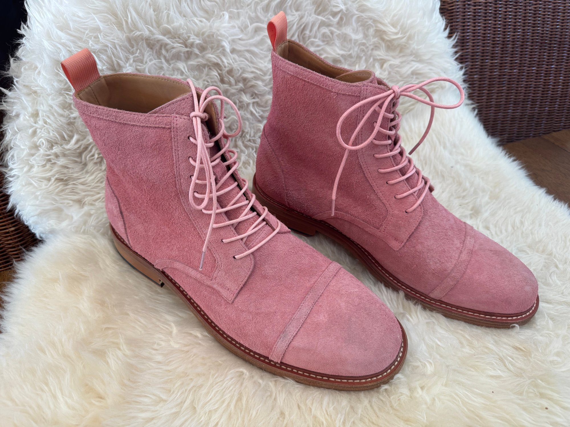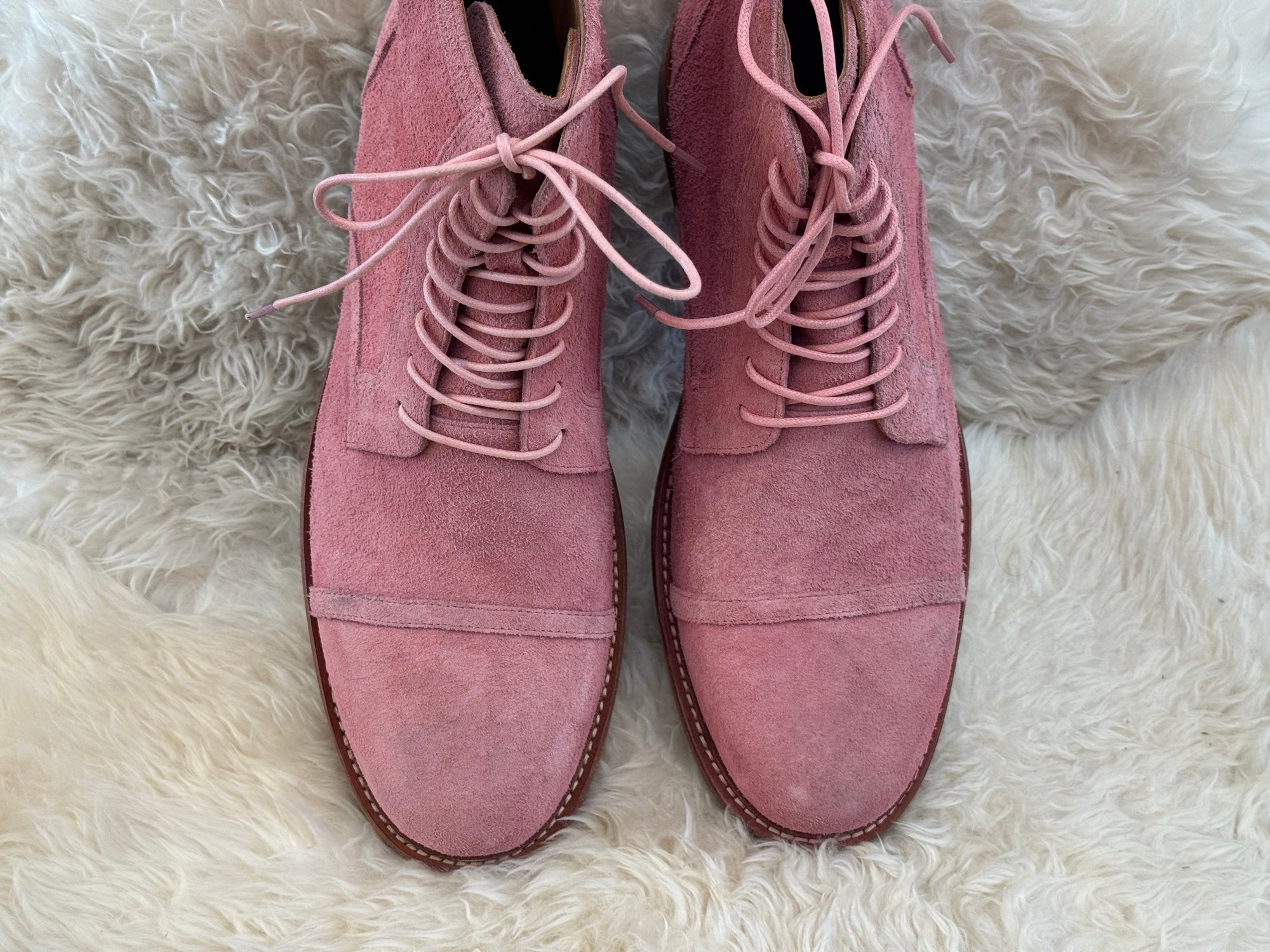 Appear to be suede and leather see pictures but in overall very nice condition and do not appear to have been worn. Very well made