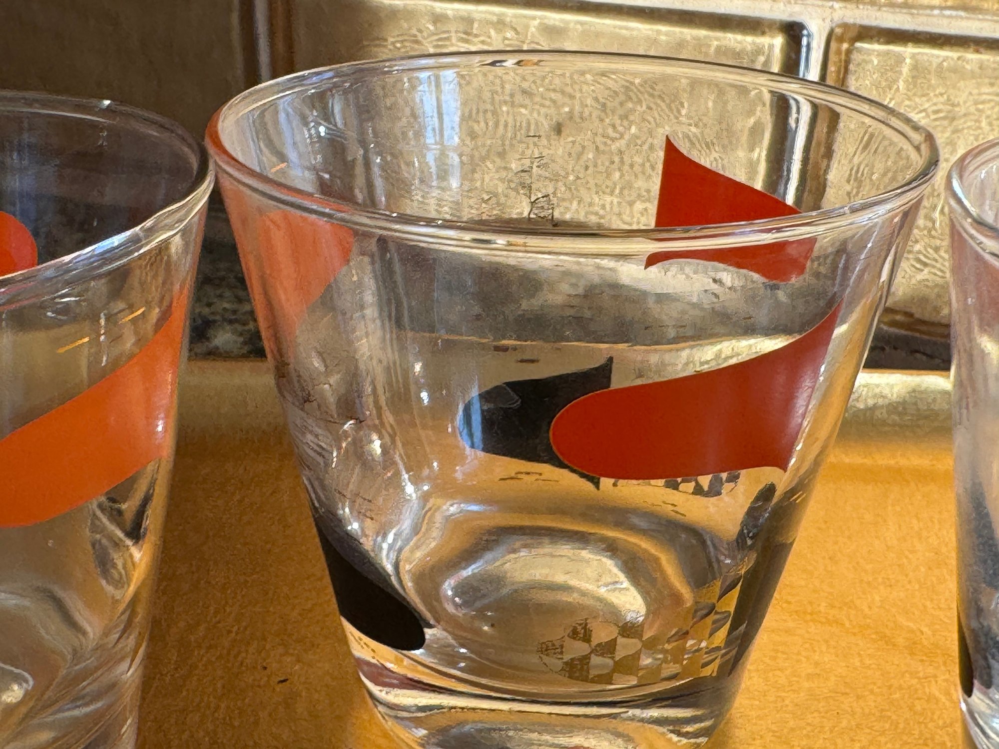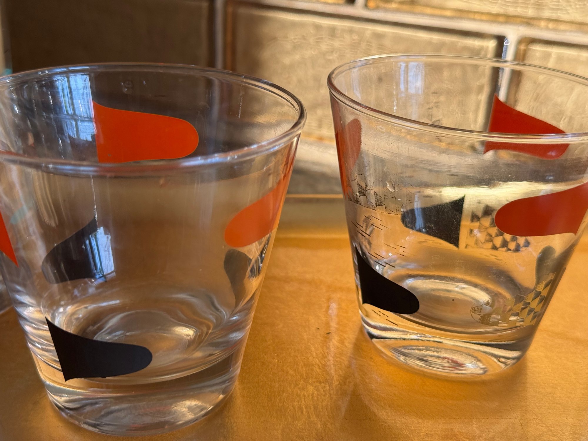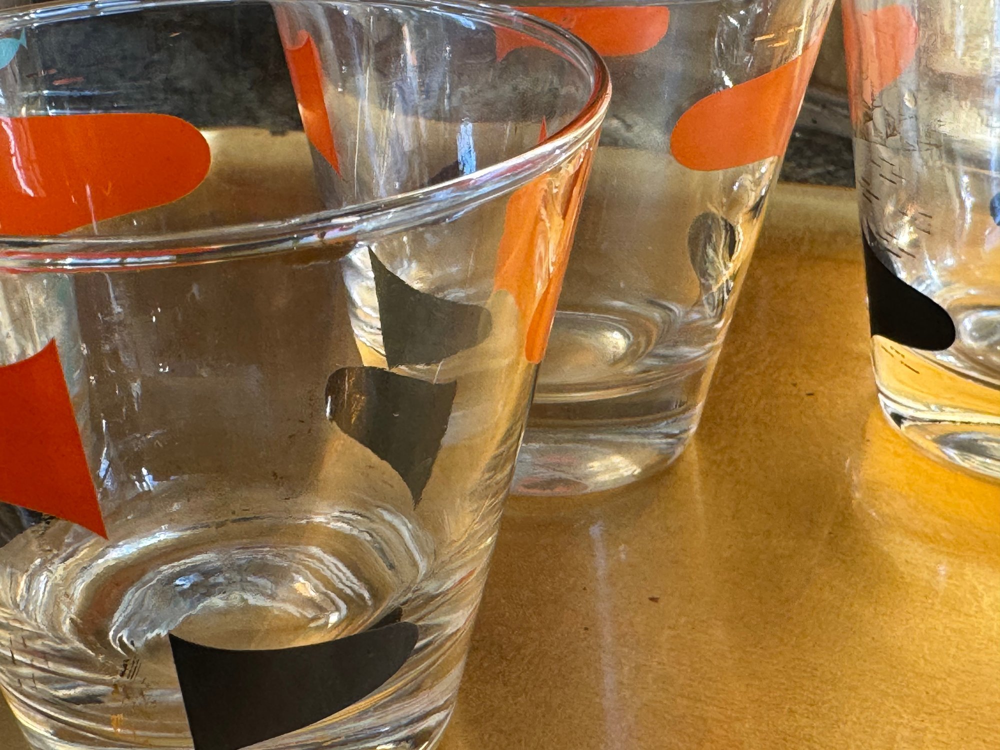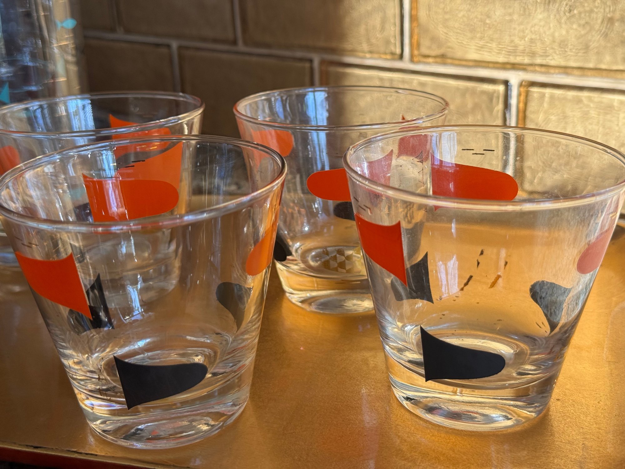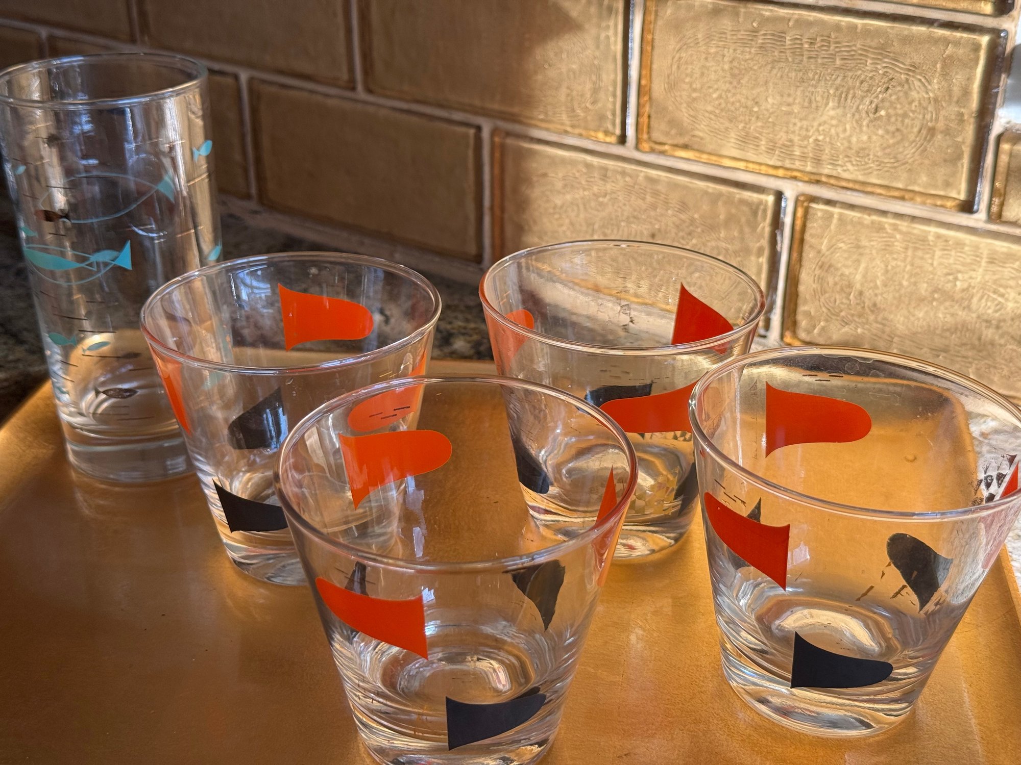 Some definite ware on the classic low ball mid century glasses and a tall and slender fishy themed highball to treat yourself right.