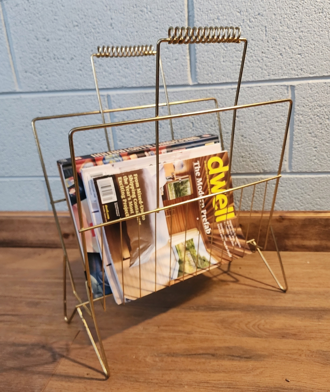 Mid Century Modern Brass Magazine Rack With Coiled Handles. 15 w x 10 deep x 19 high.
