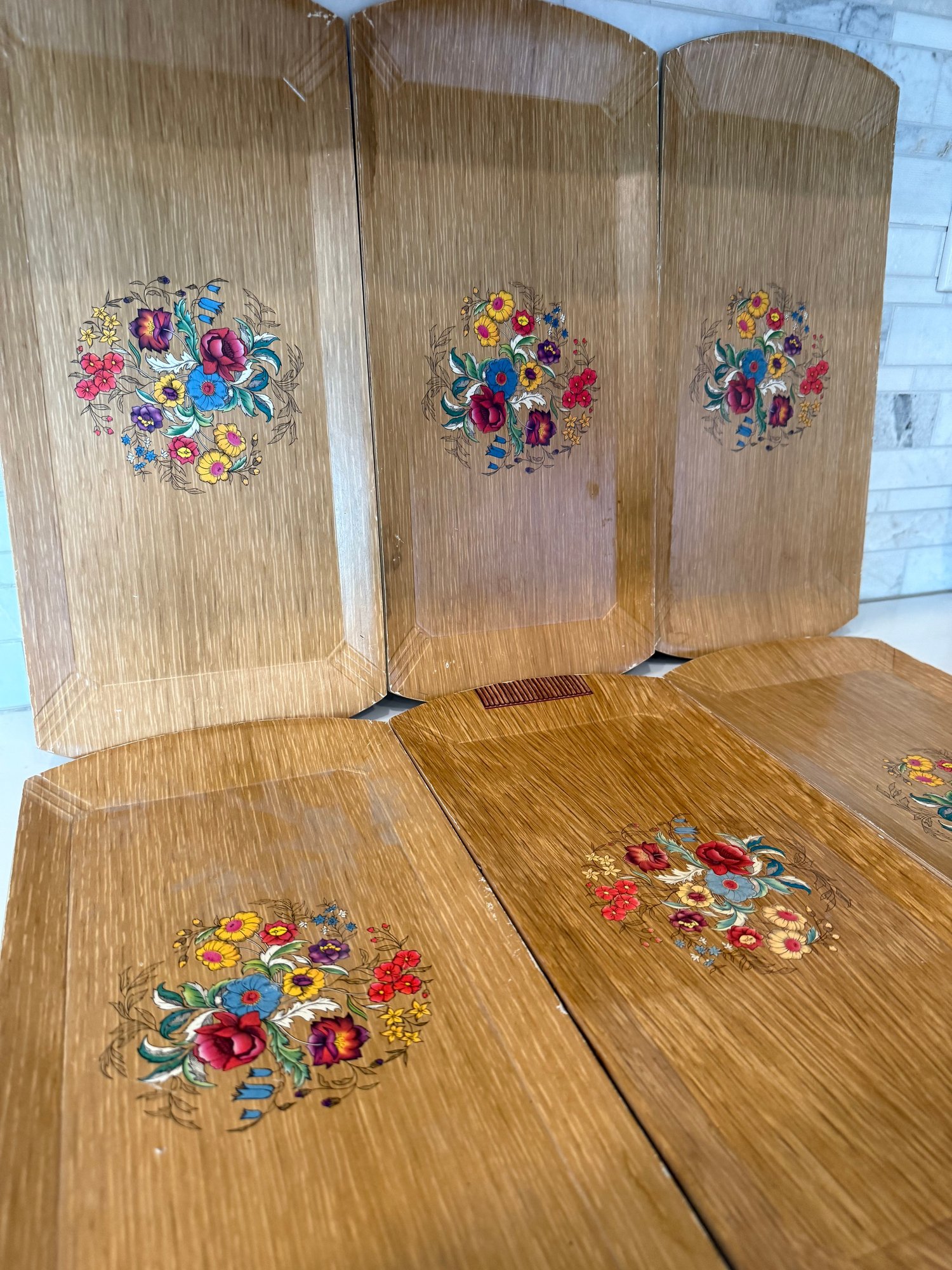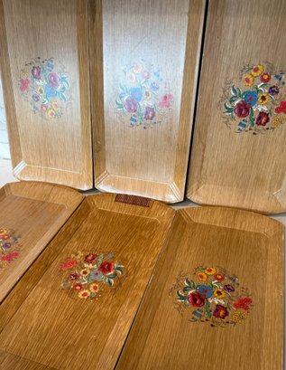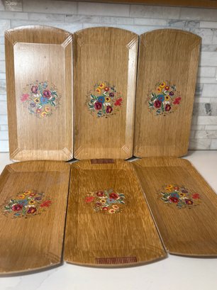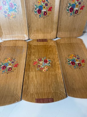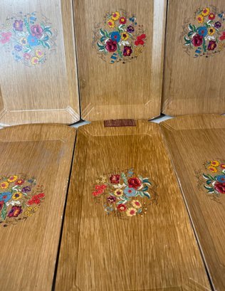Mid Century Modern HASKO Snack Trays With Spring Flower Motif. Set of 6