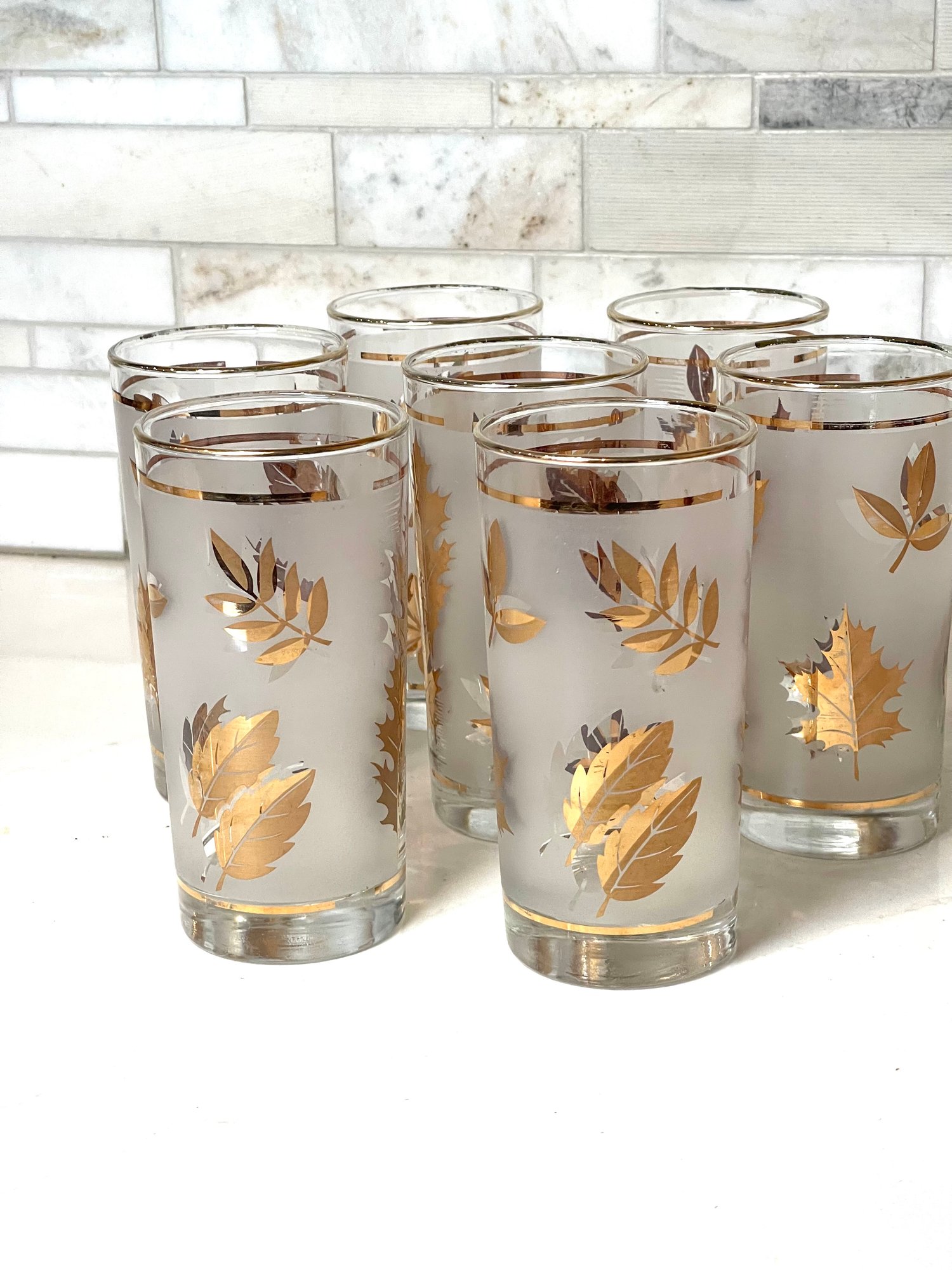 Mid Century Modern Libbey Frosted Gold Leaf Foilage Glassware . No chips or cracks.