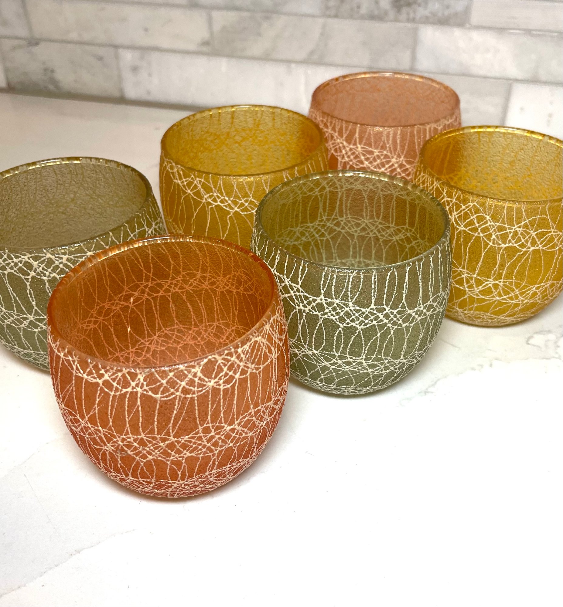 Mid Century Modern Spaghetti Roll-Poly Glassware. Set Of 6: Rare Find!