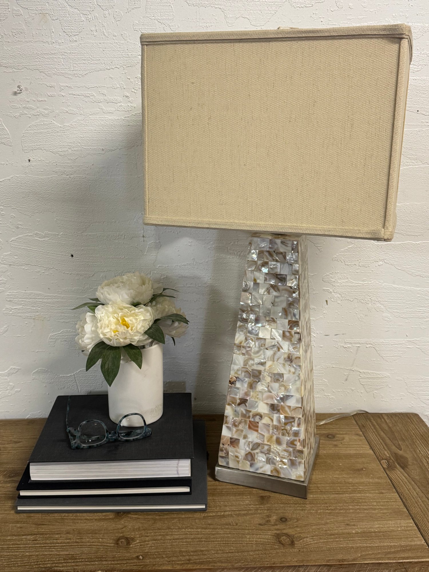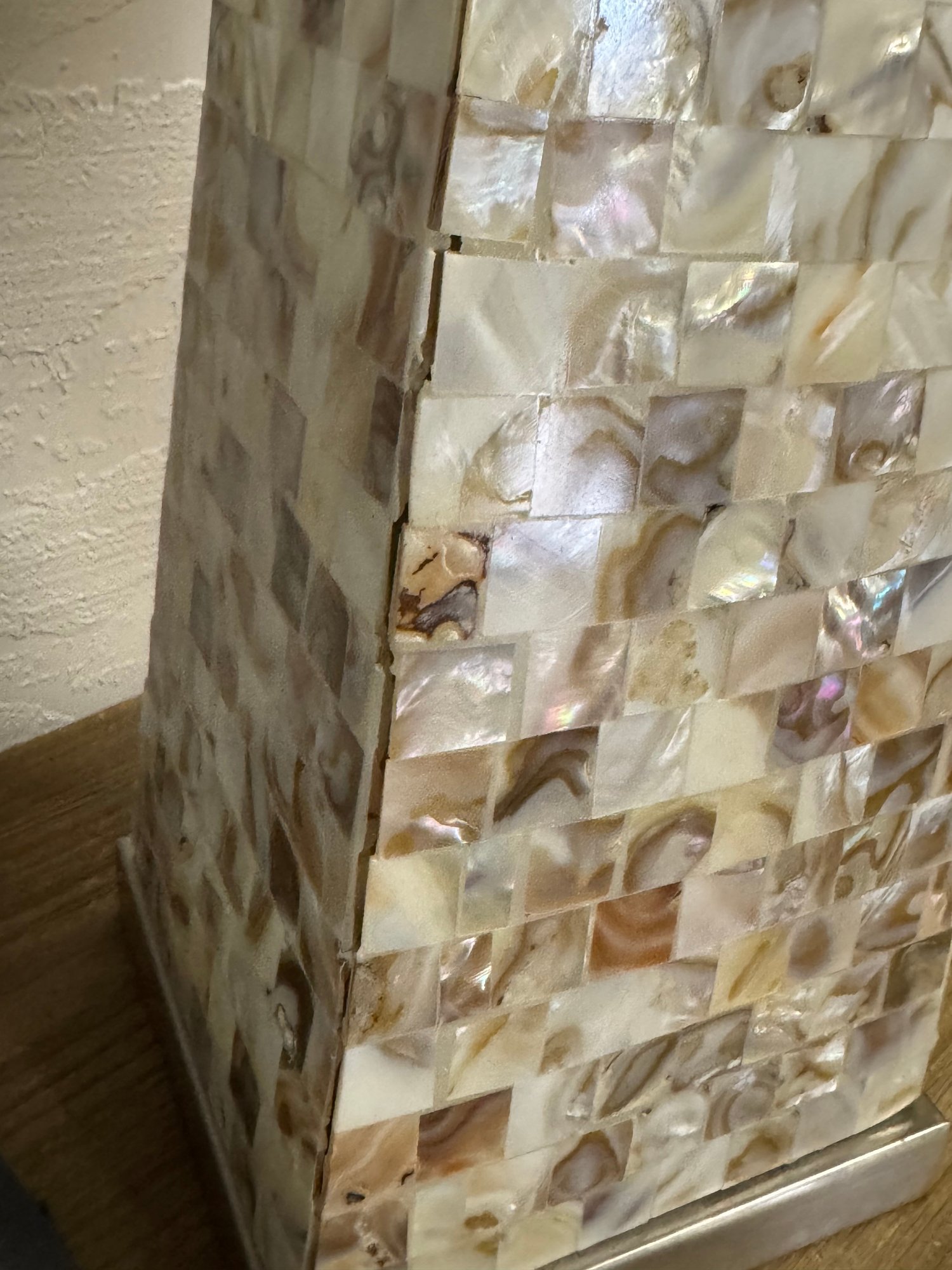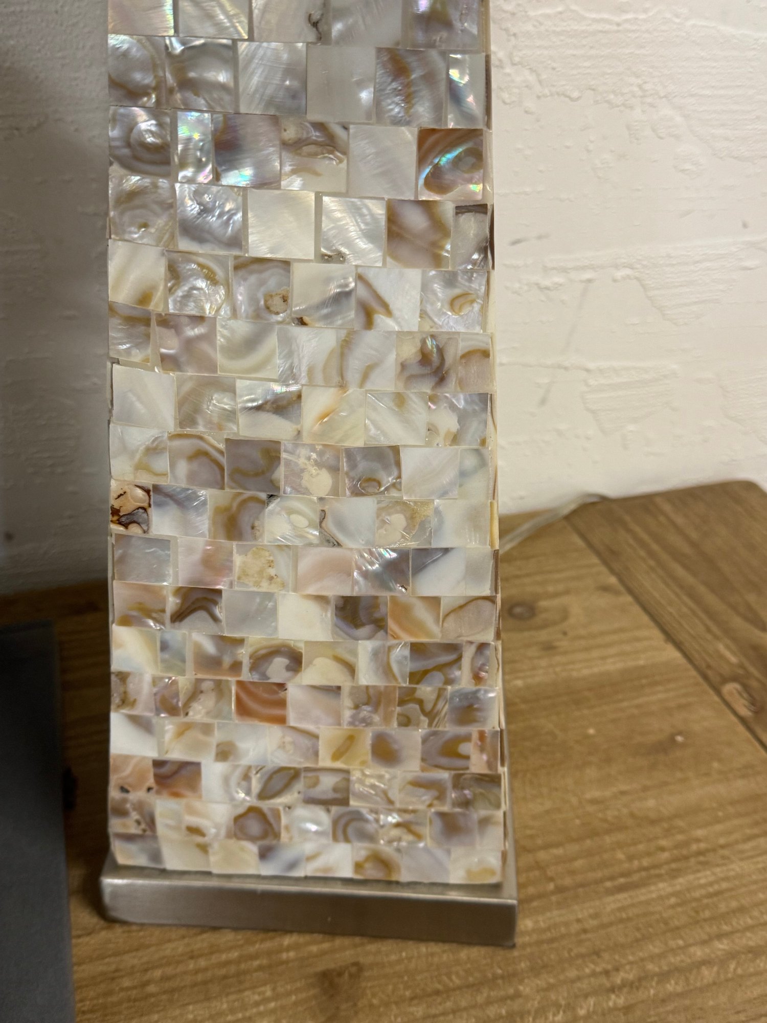 Mother of Pearl Table Lamp as is see photos…. Could use some TLC needs to be glued on base