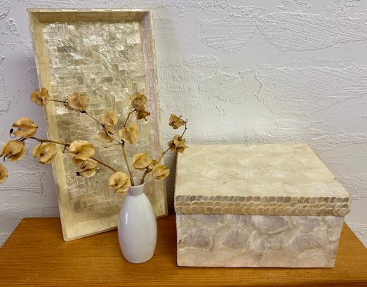 Mother Of Pearl Tray & Box With Lid And A Cute Lil Vase