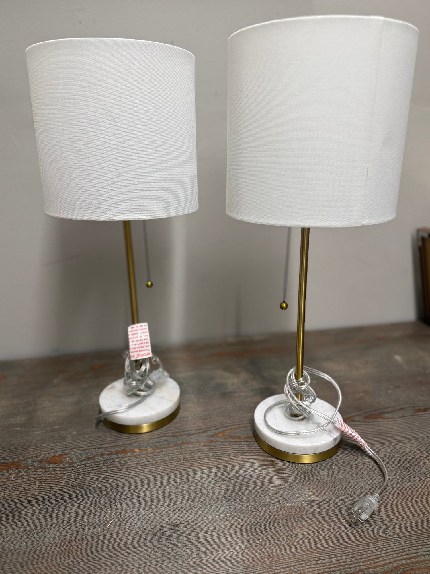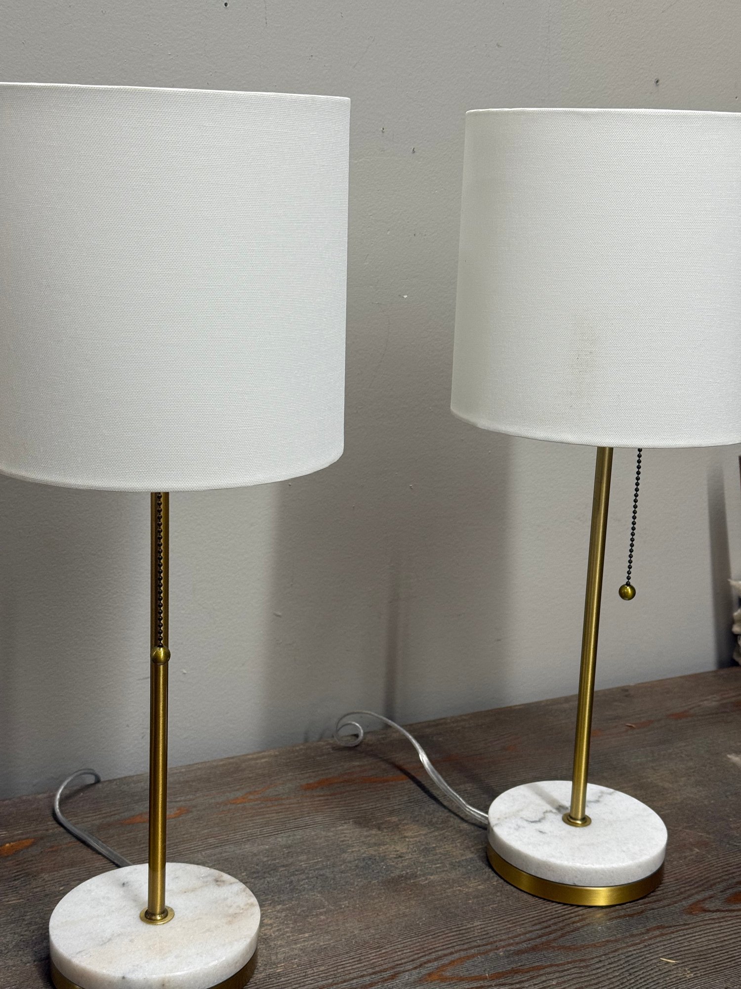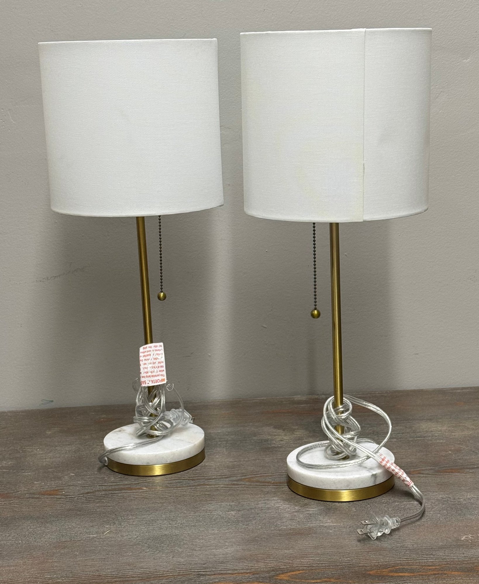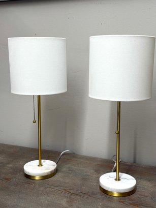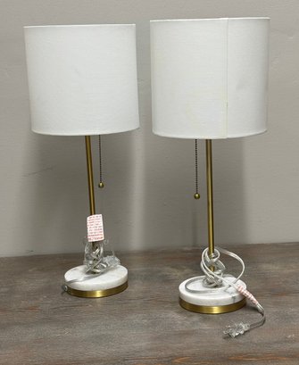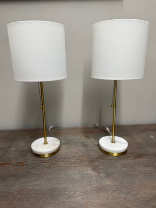 Gold Tone Lamps(2) With Marble Bases, Modern/Minimalist, Look New
