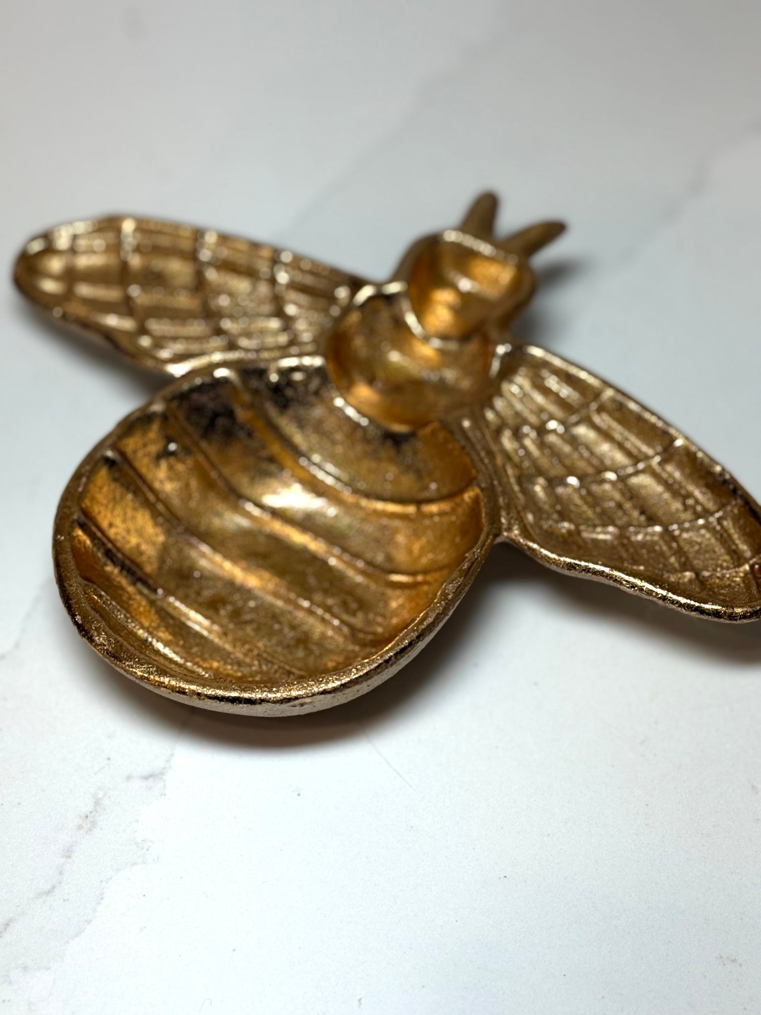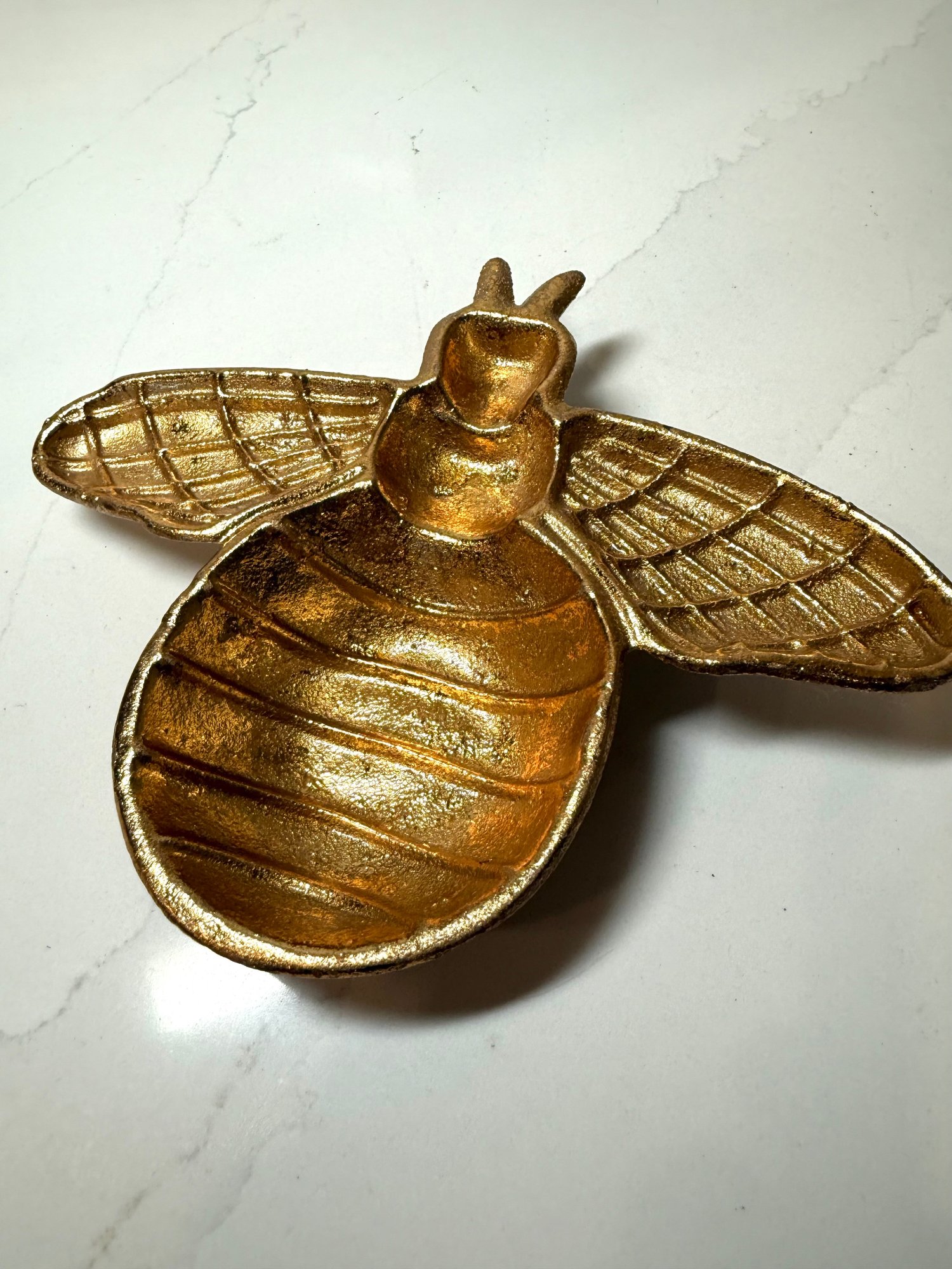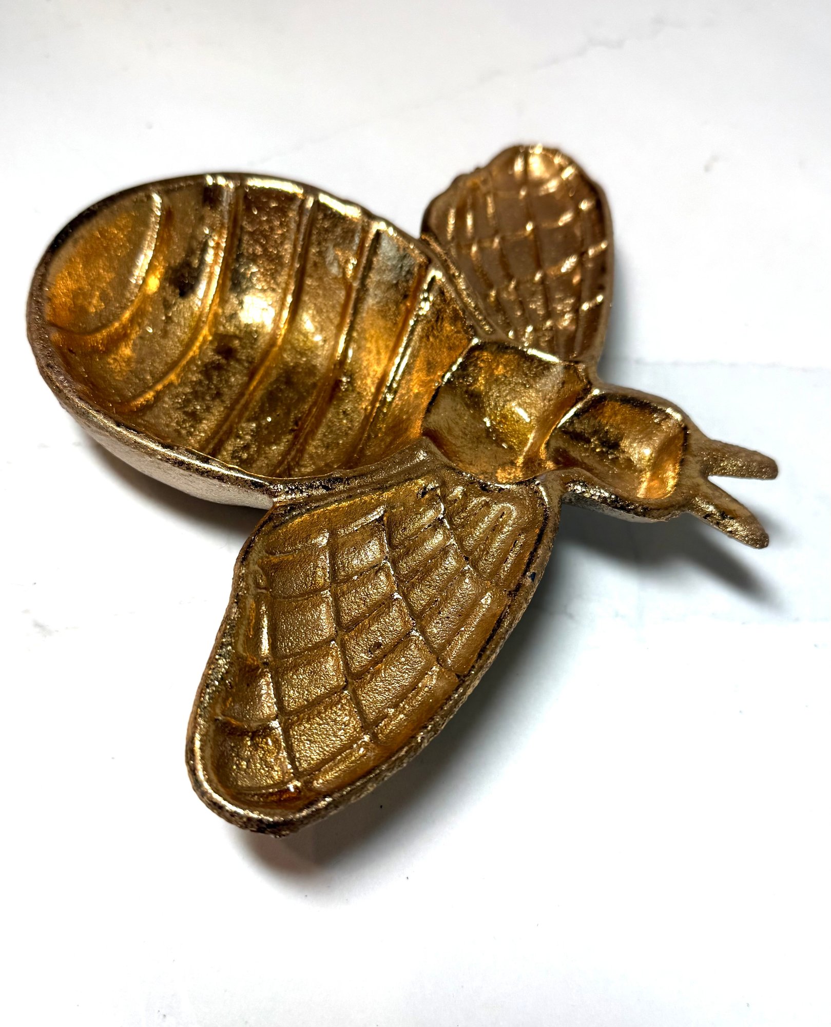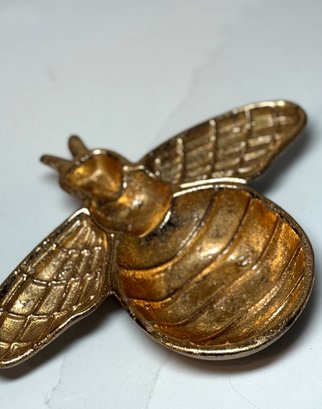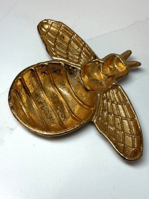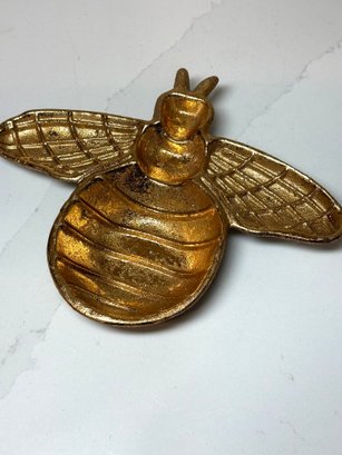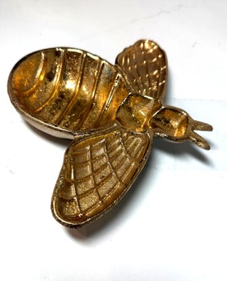 Gold Toned Cast Iron Bumblebee Trinket Dish. 6.5 Wide X 8 Long