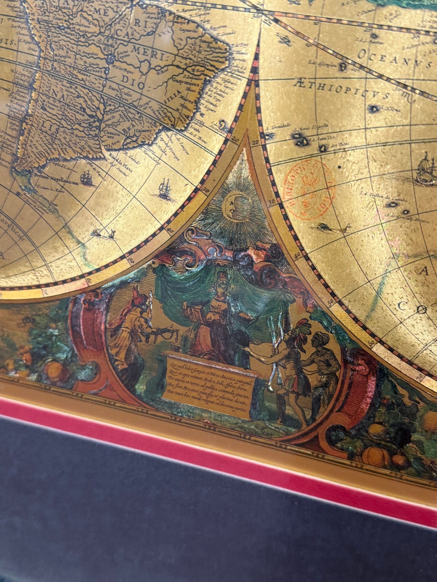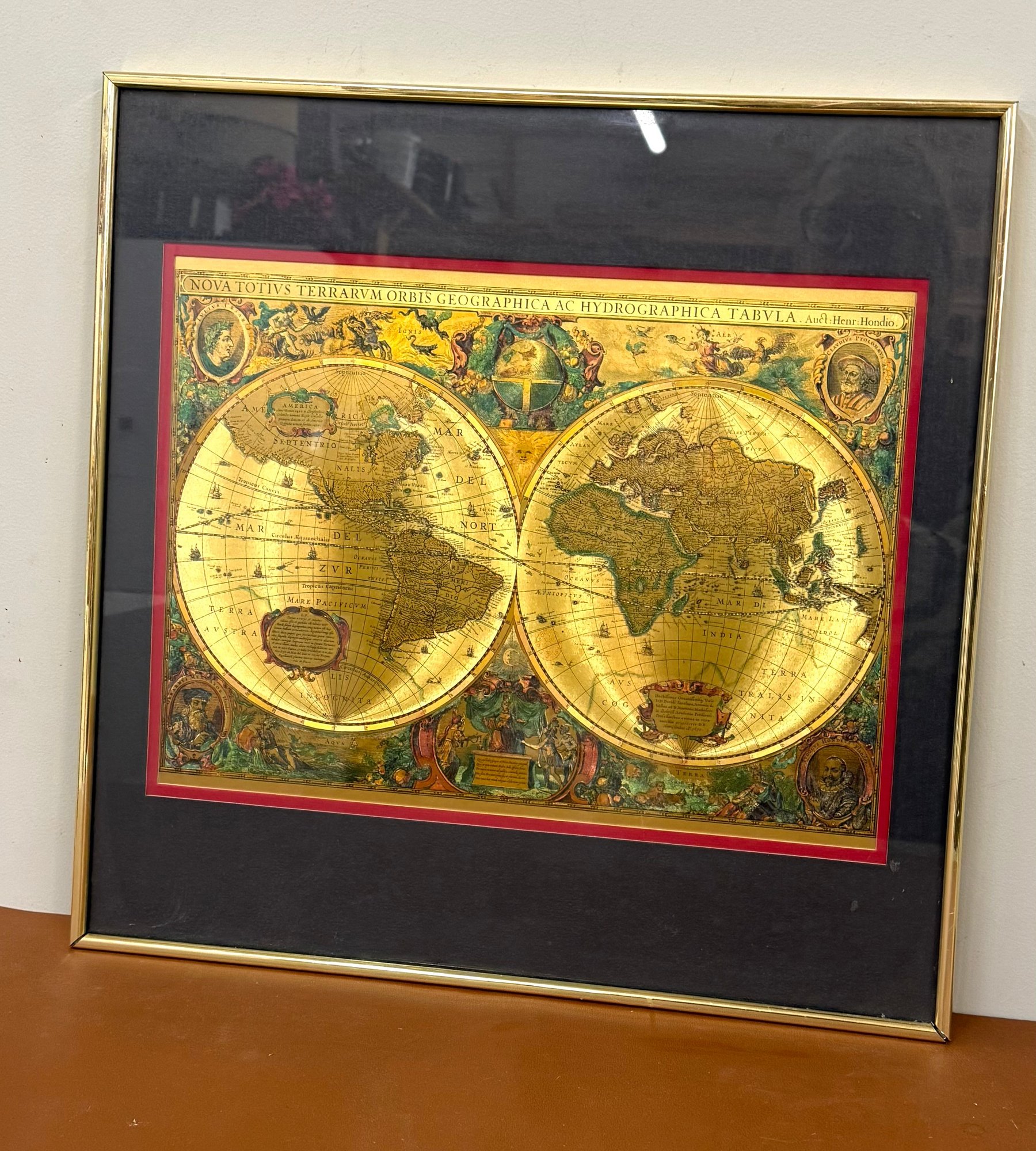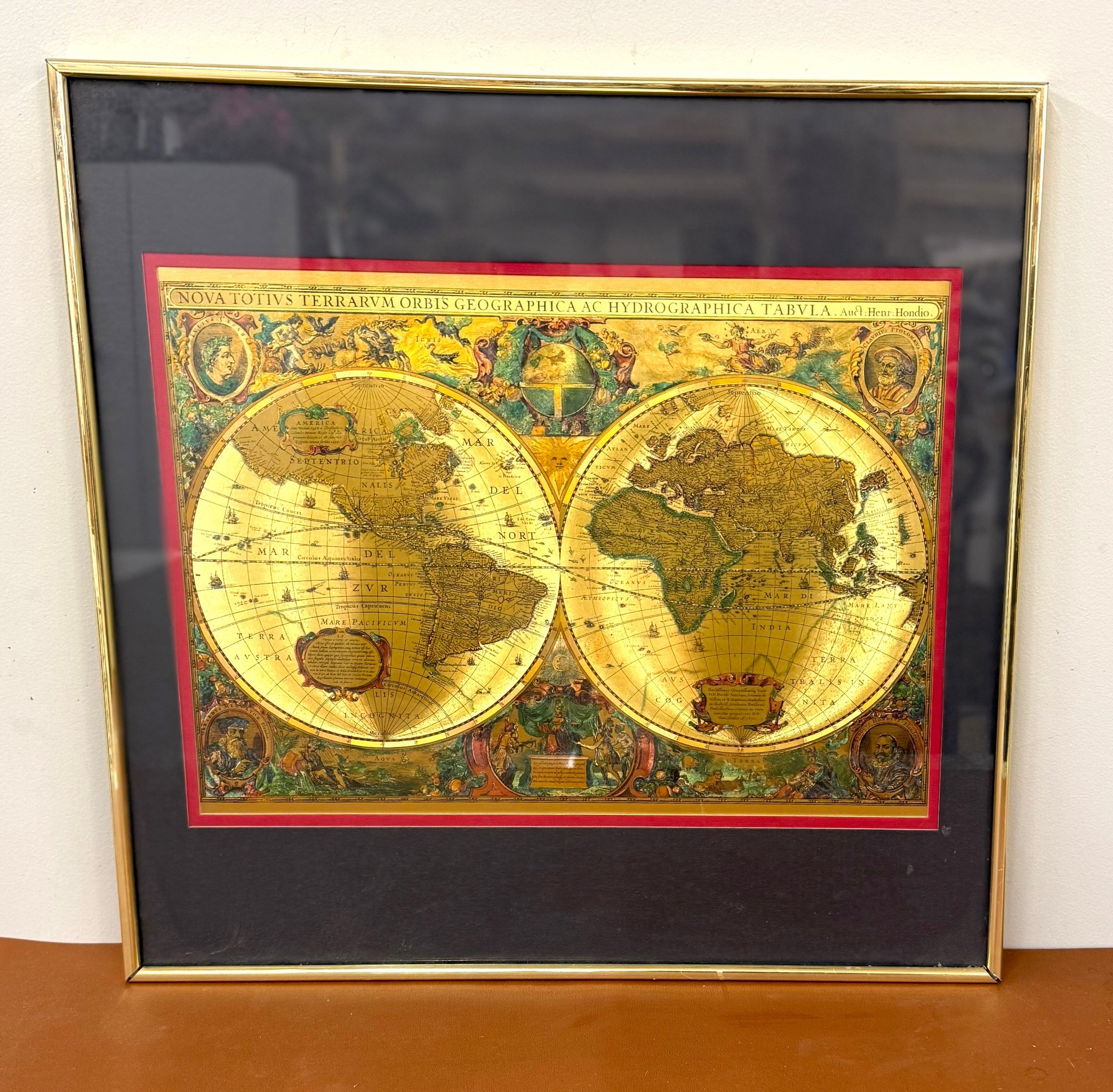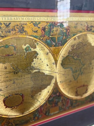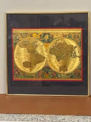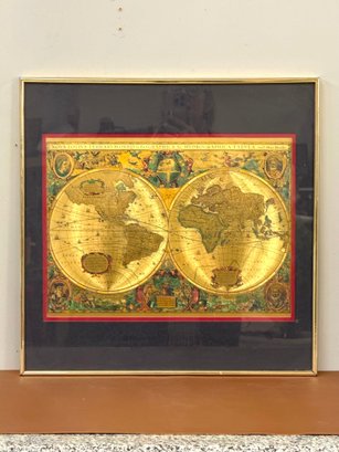 Old World Map Manifestation, Dbl Matted And Framed. Classic gold frame, 18 x 18