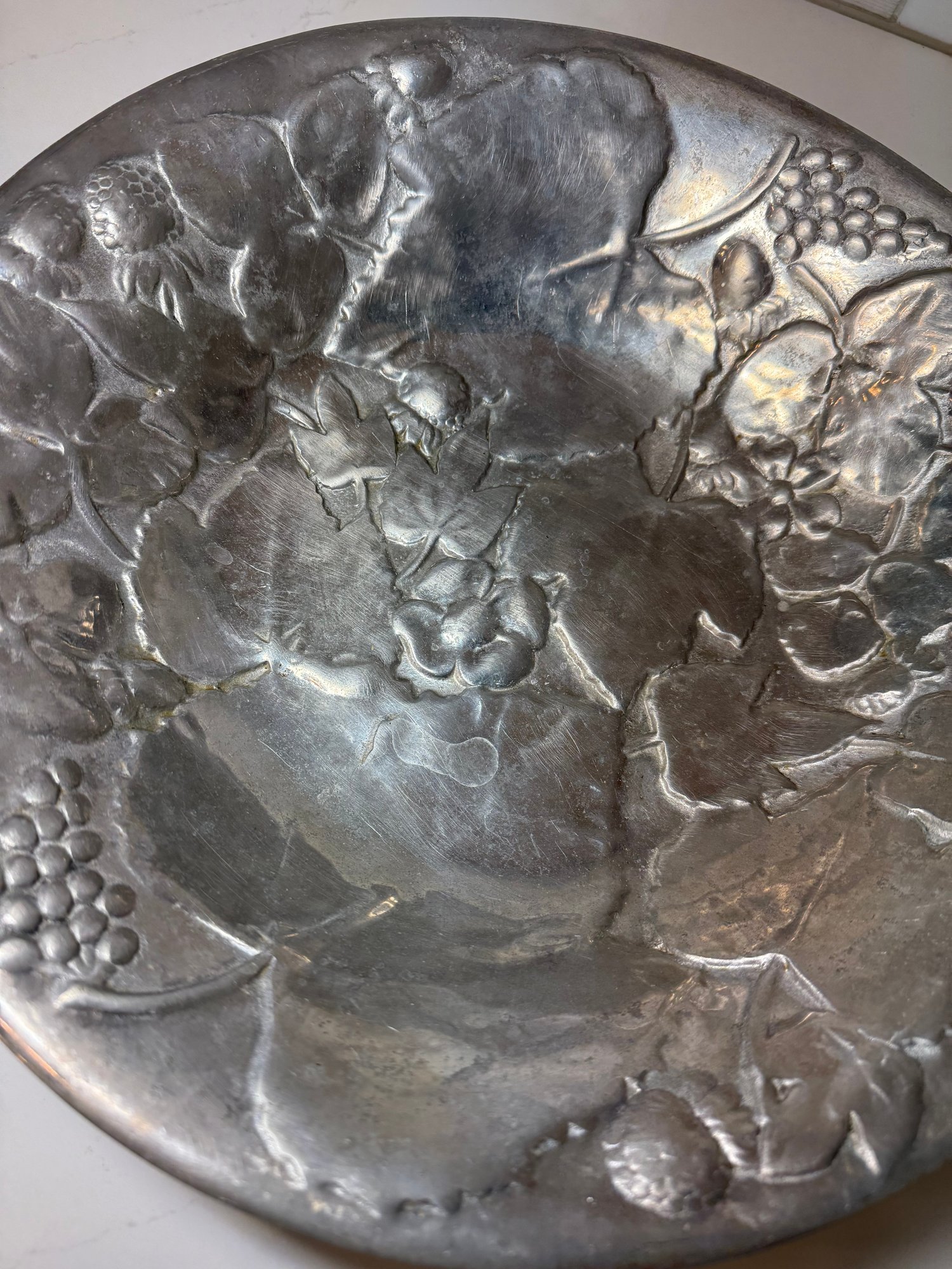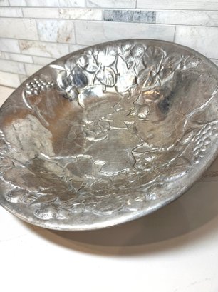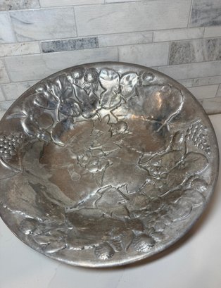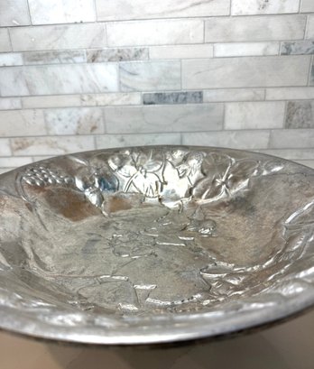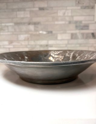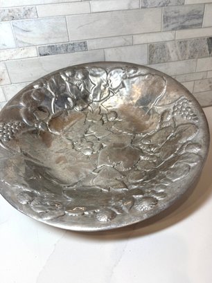Gorgeous Etched And Carved Pewter Serving Bowl: Lg- 13.5 Diameter X 2.75 High