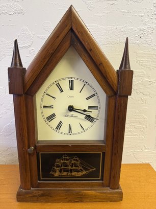 Seth Thomas quartz ship antique Clock as is one of the Finials has a little Chip /