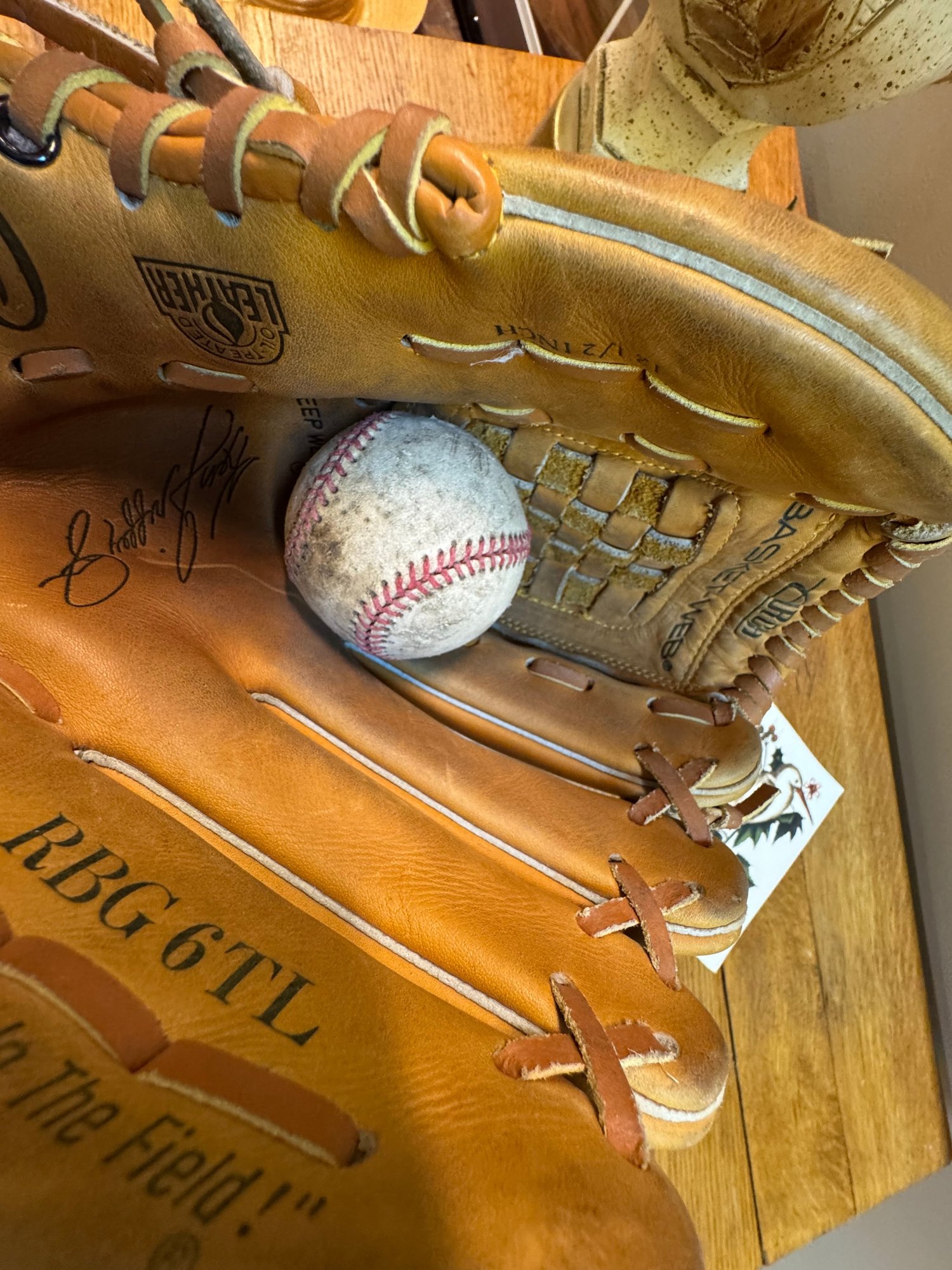 Arguably one of the finest mitts out there! This one is rather new and just needs a little oil and fitting and will be a standout in any field. See pictures for specifics…. Ball included!
