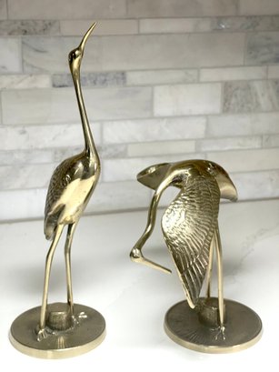 Set Of 2 Classic Mid Century Modern Brass Cranes/Herons. Very detailed, ornate with textured base and feathers.