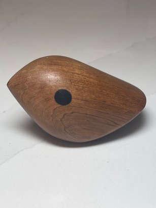 Fabulous Danish Modern carved figurine. Large Twirling Bird Polished Wood Sculpture By Jakob Hermann For Warm Nordic. 3.5 wide x 2 high with set wood eye. Fabulous Mid Century Modern designed sculptural figurines.