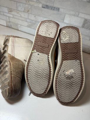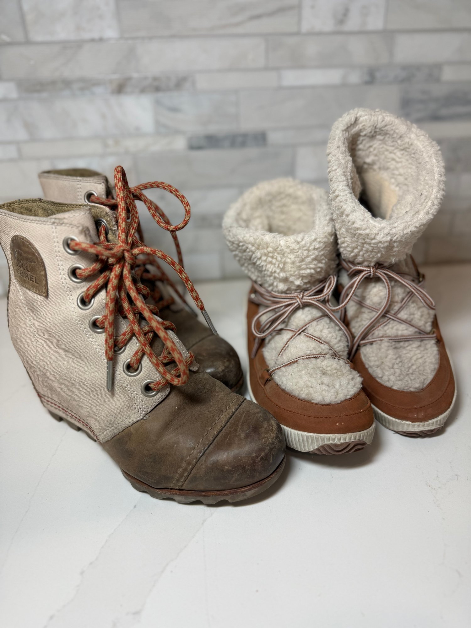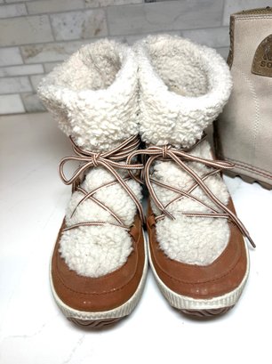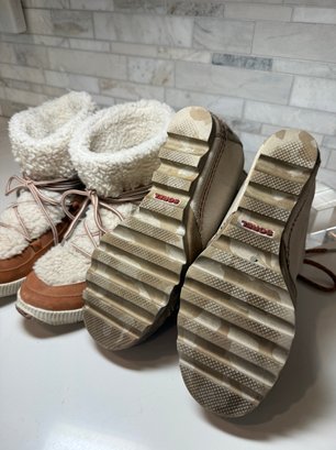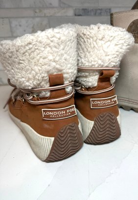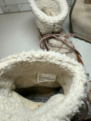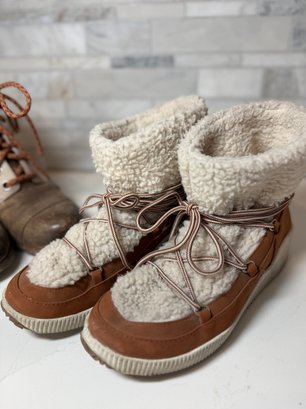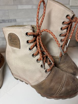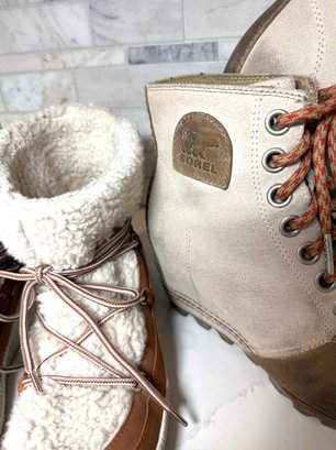 Cozy shearling lined London fog Booties with Joan of Arctic Wedge Sorels. Both lightly worn and size 7orel