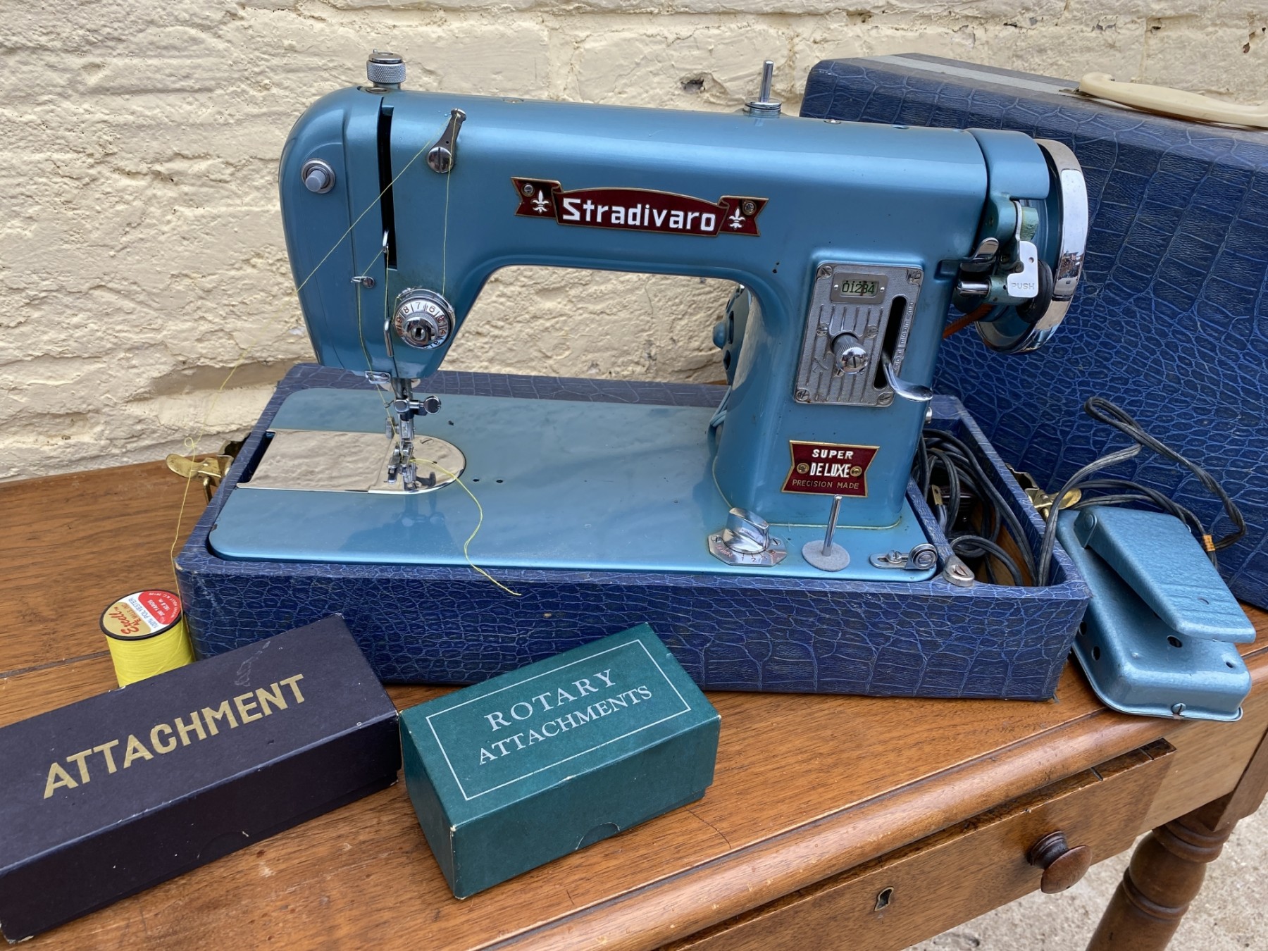 Unique and beautiful sewing machine built for heavy materials like canvas, upholstery, and denim as well as lightweight materials like cottons. Untested, but has lots of accessories and appears ready to go.