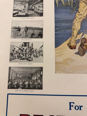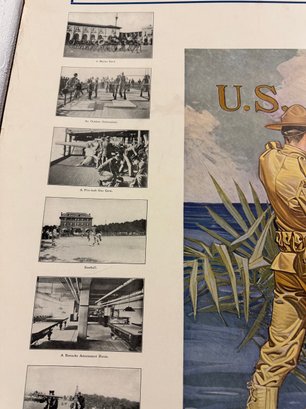 38.5 x 28.5 inches. (Correction made: Originally listed as WWII poster ). It has also been pointed out to us that there appears to show a uniform mechanical halftone dot pattern, which is consistent with later off-set reproductions, not the 1917 - era stone lithography. - So the original story we were relayed concerning this estate item may have been only for the others in the lot, and this was a later addition. Please judge for yourself, but a pretty cool piece of US Recruitment history.