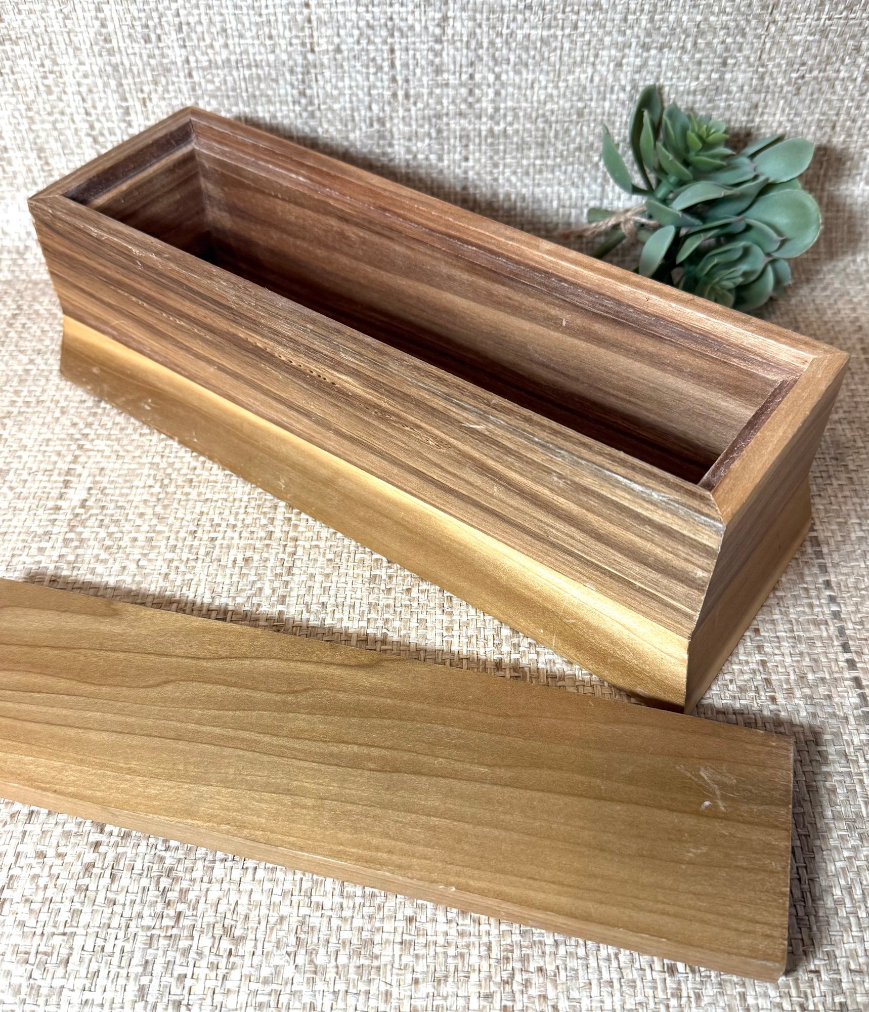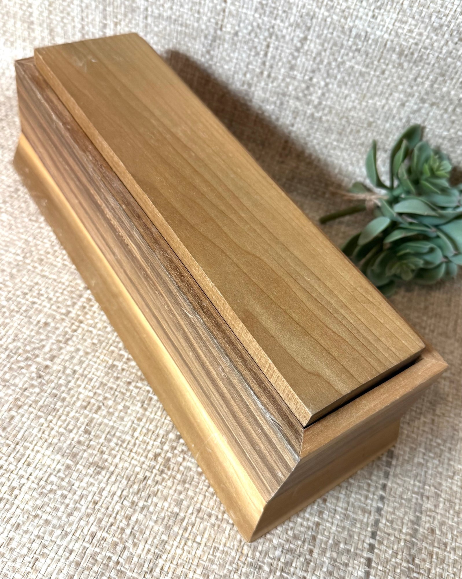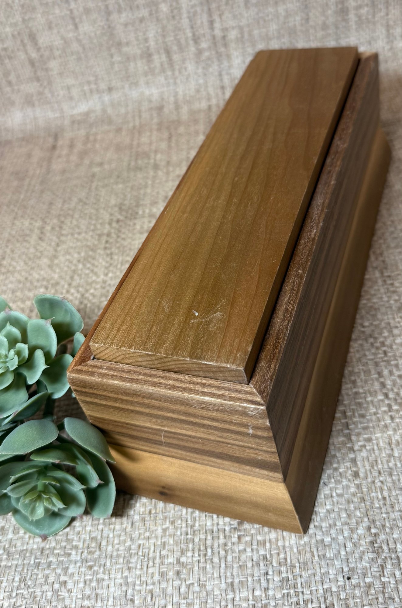 Very Attractive Solid Wood Desk Top Box With Lid. Perfect for pens/pencils/ cigars ( ?)