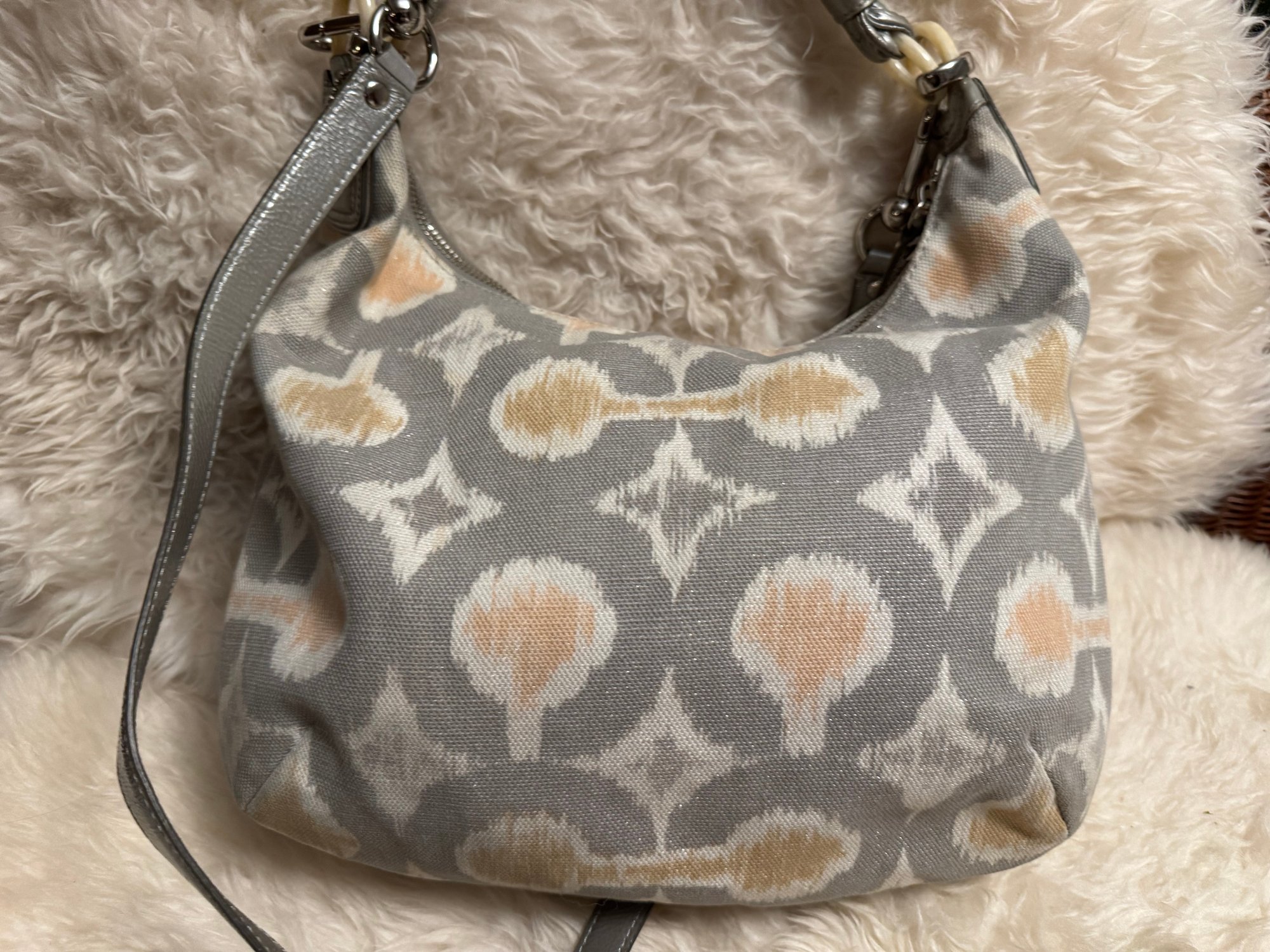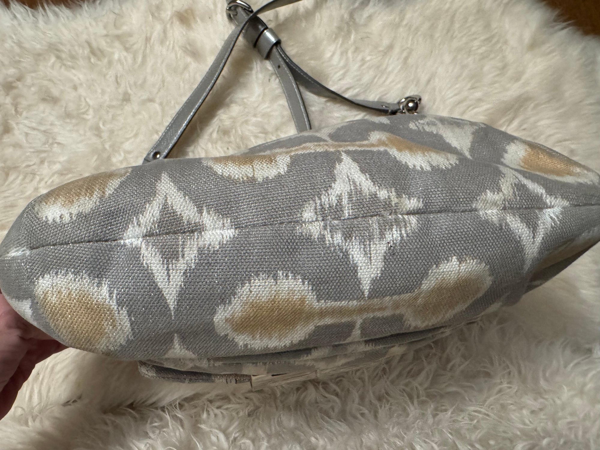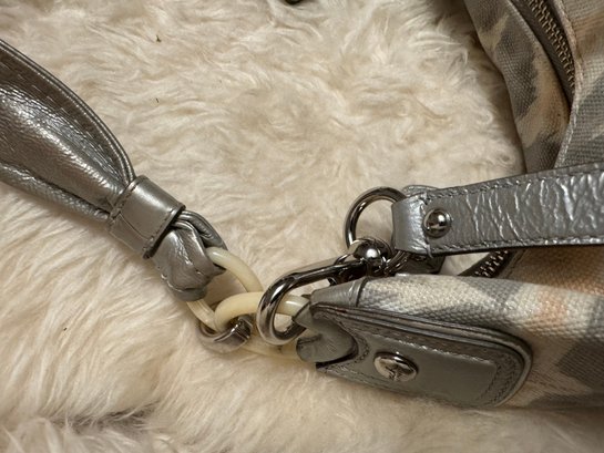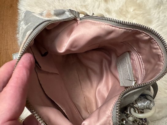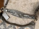 We fell in love with this bag as it is in such nice condition complete with hang tag and just the right silver shimmer. It came without a dust bag, does have a hang tag and appears authentic but we encourage looking at photos etc. See pix for sizing and how you will style the look!