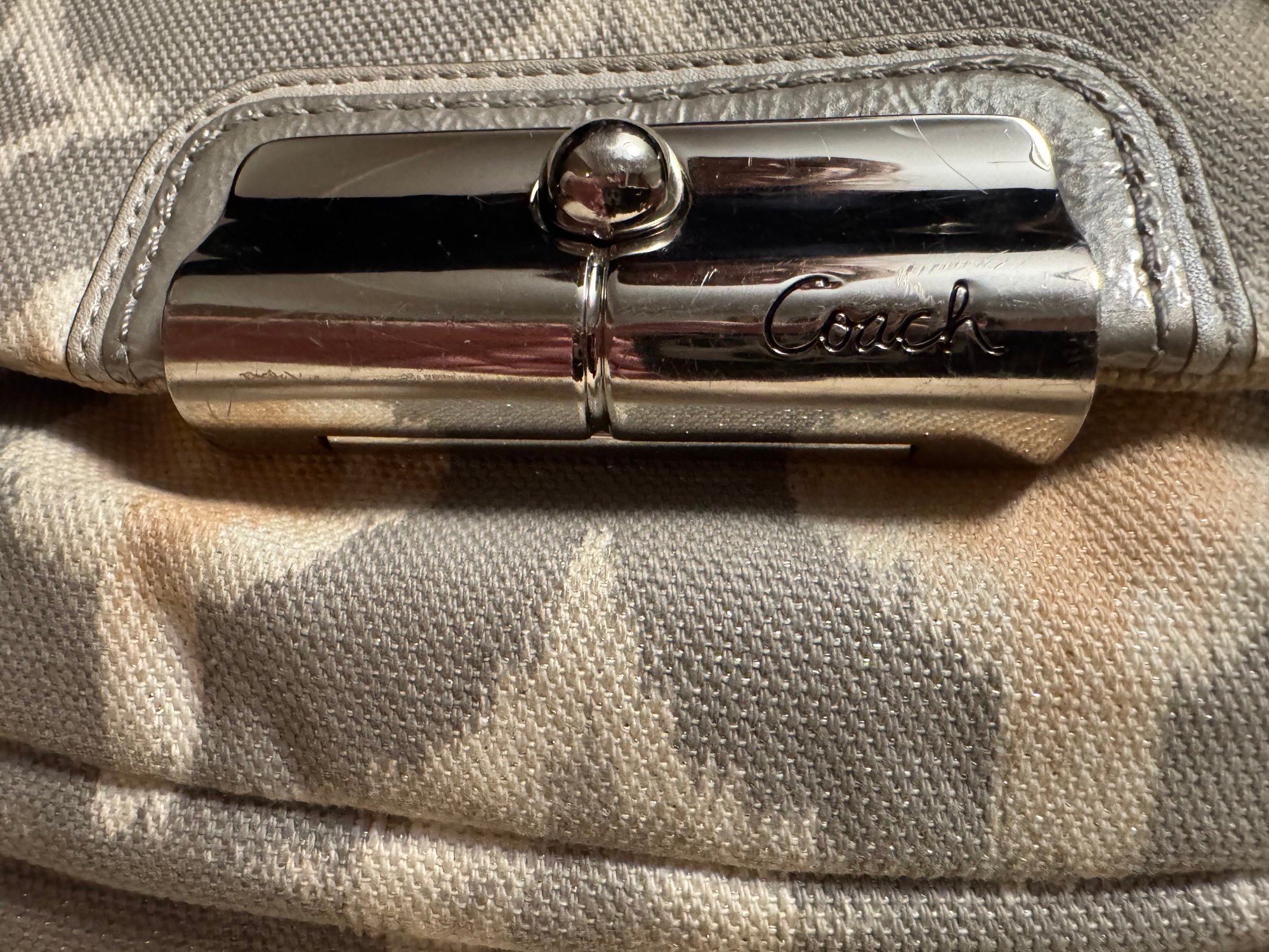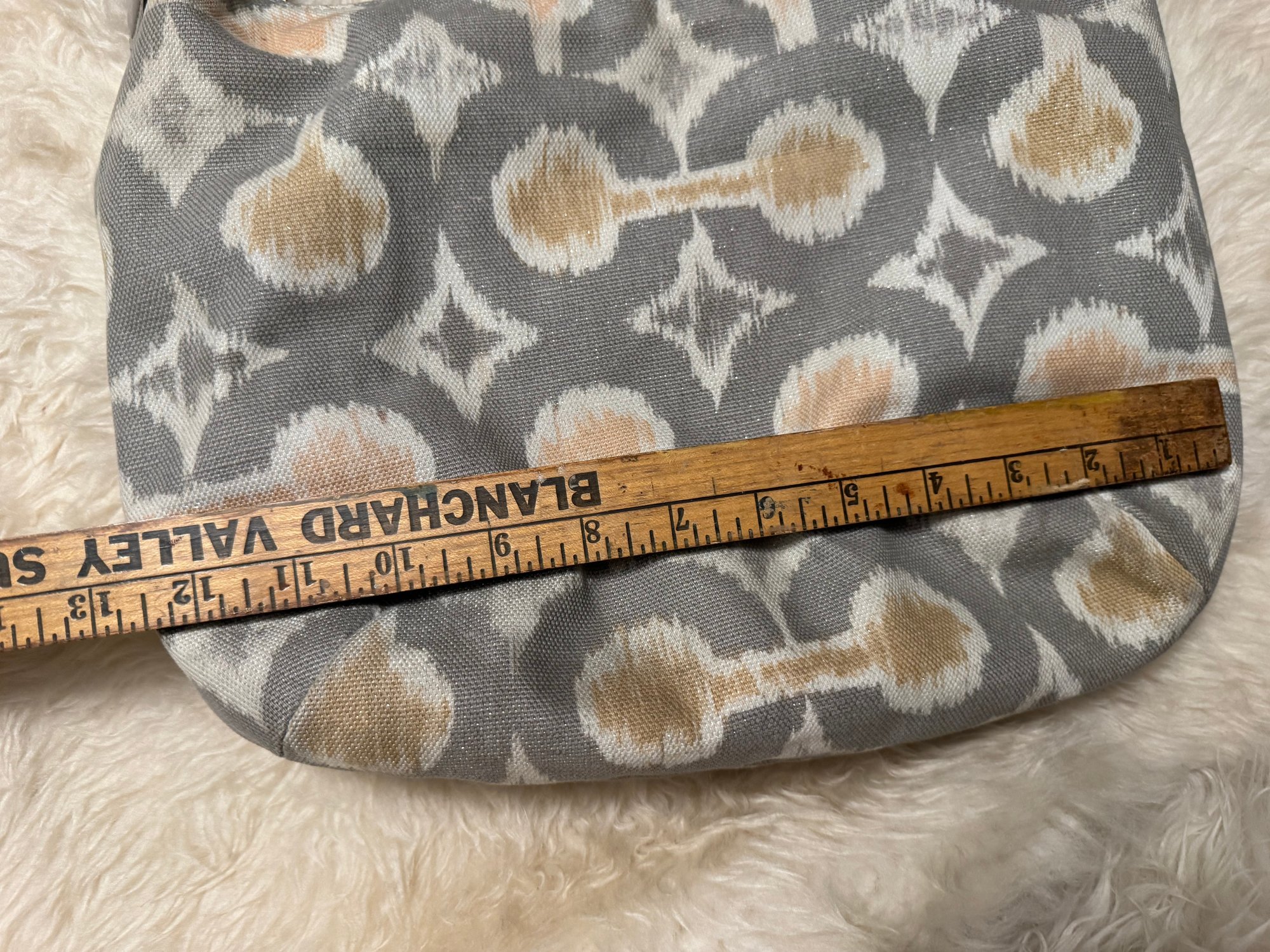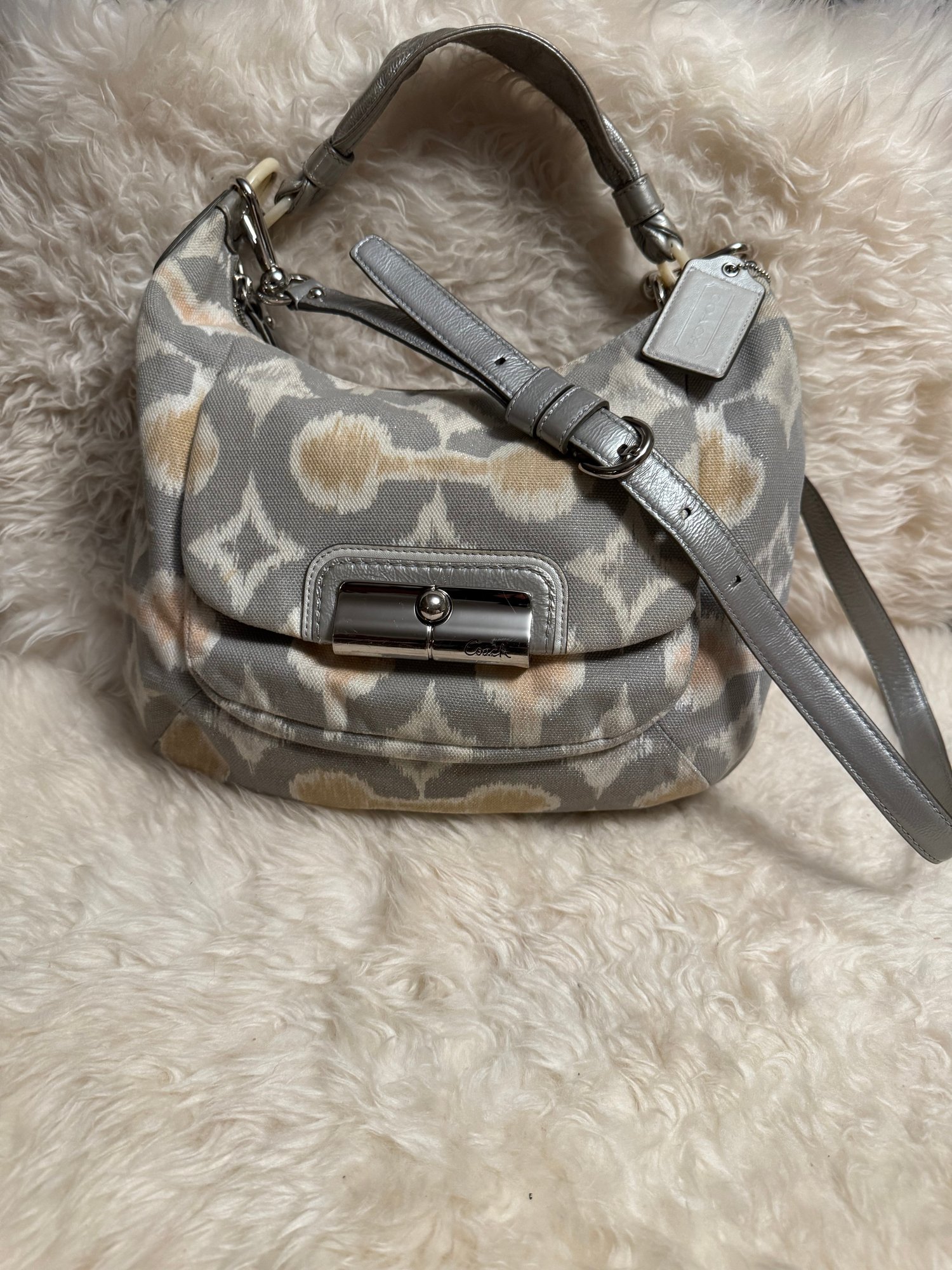 We fell in love with this bag as it is in such nice condition complete with hang tag and just the right silver shimmer. It came without a dust bag, does have a hang tag and appears authentic but we encourage looking at photos etc. See pix for sizing and how you will style the look!