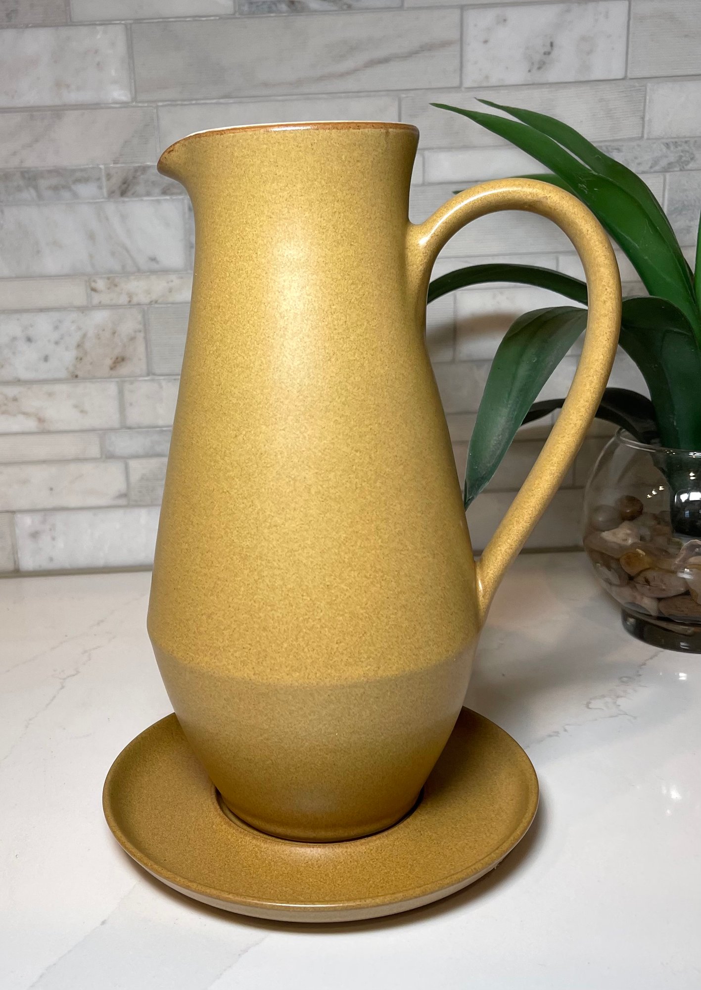 Great color shape and size, collectible Denby England earthenware. Ode Jug with saucer. 10.5 x 7 wide