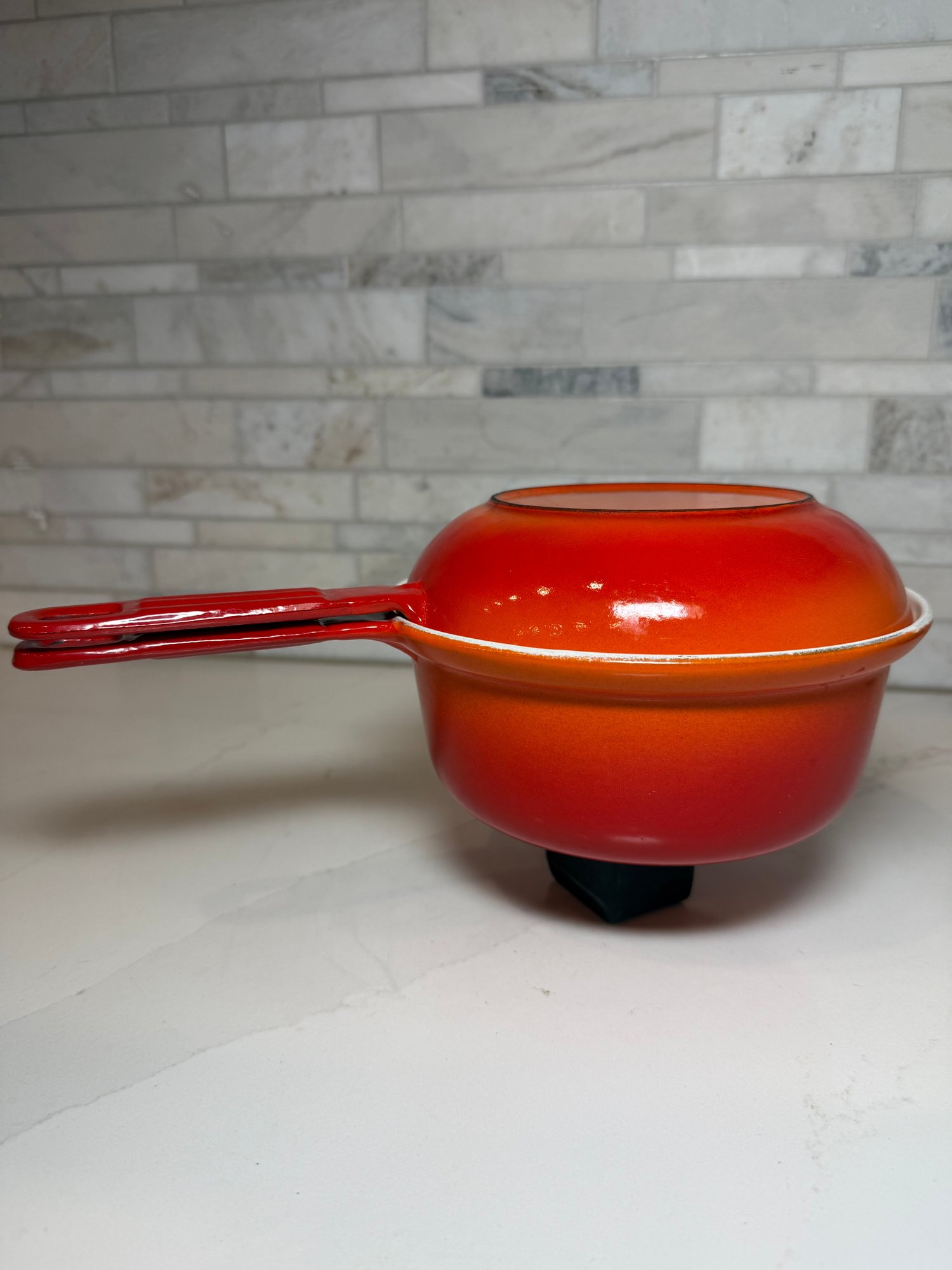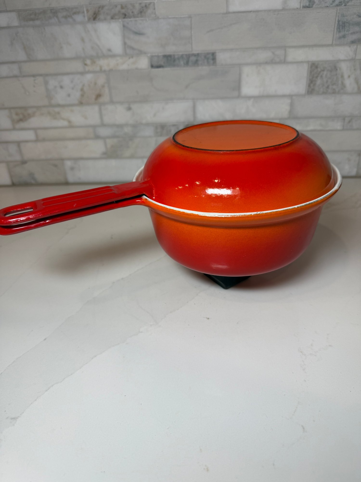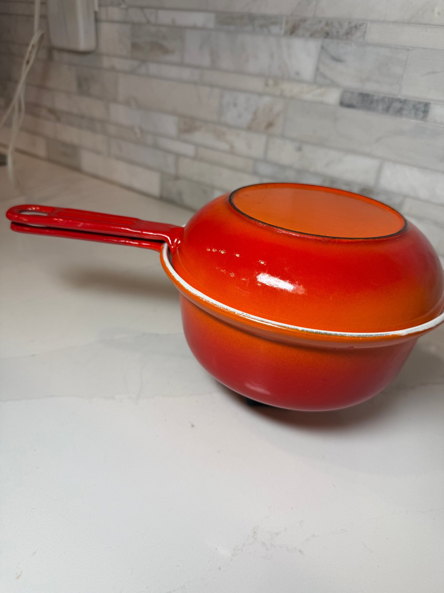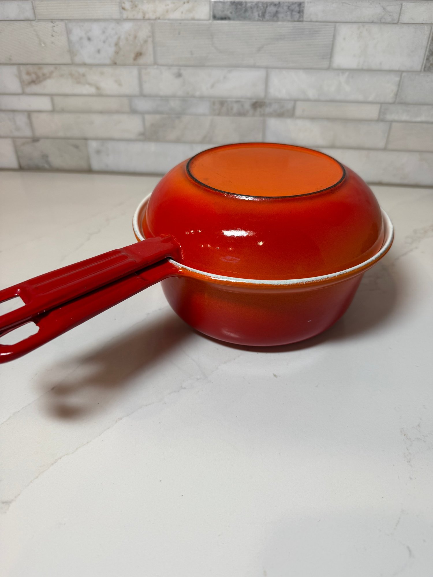 Vintage Descoware Enamel Cast Iron In Flame Orange, Saucepan And Skillet