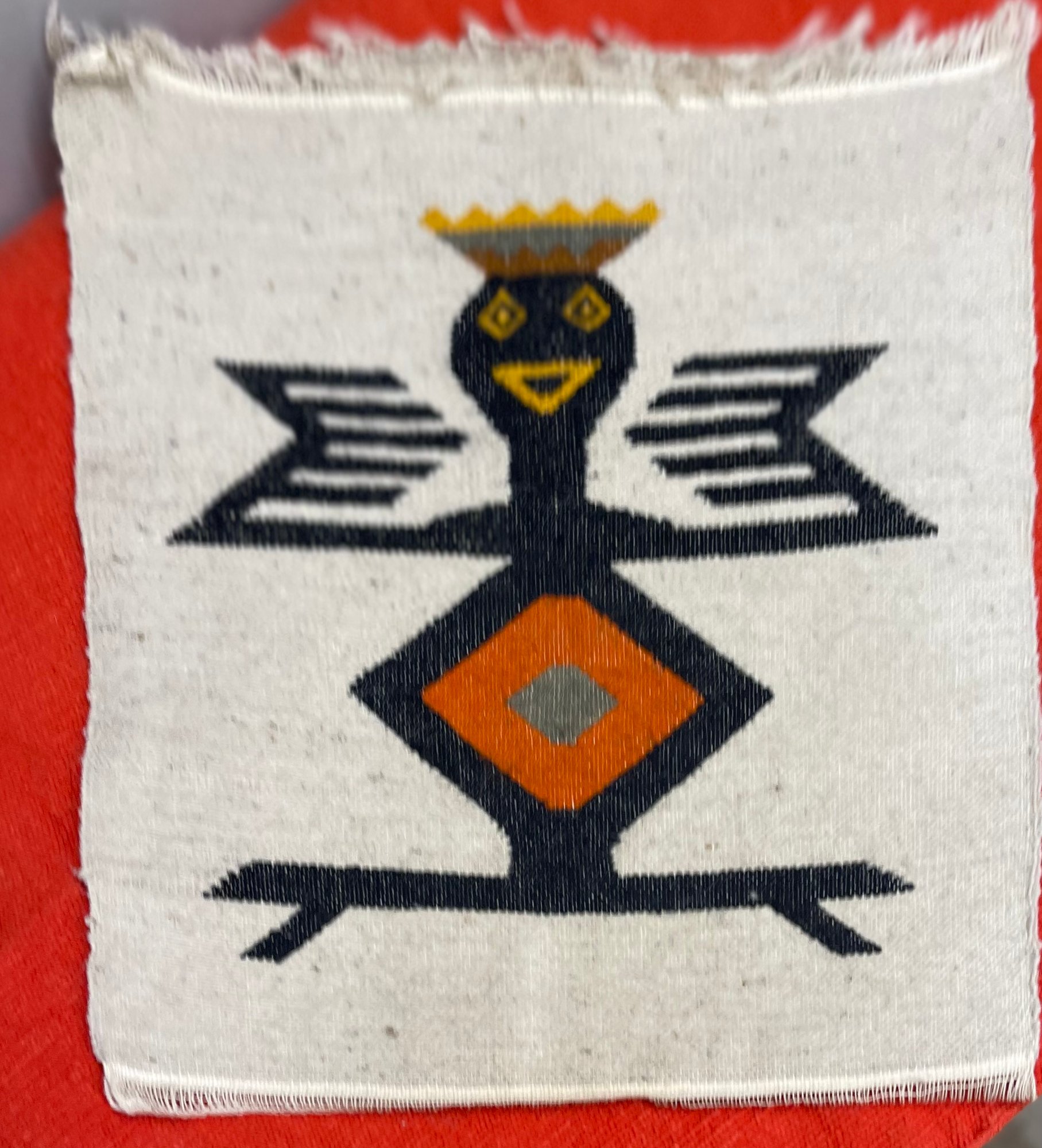 Vintage Ecuador/Aztec (?) Wool Weaving Textile Bird/Man 14 X 14