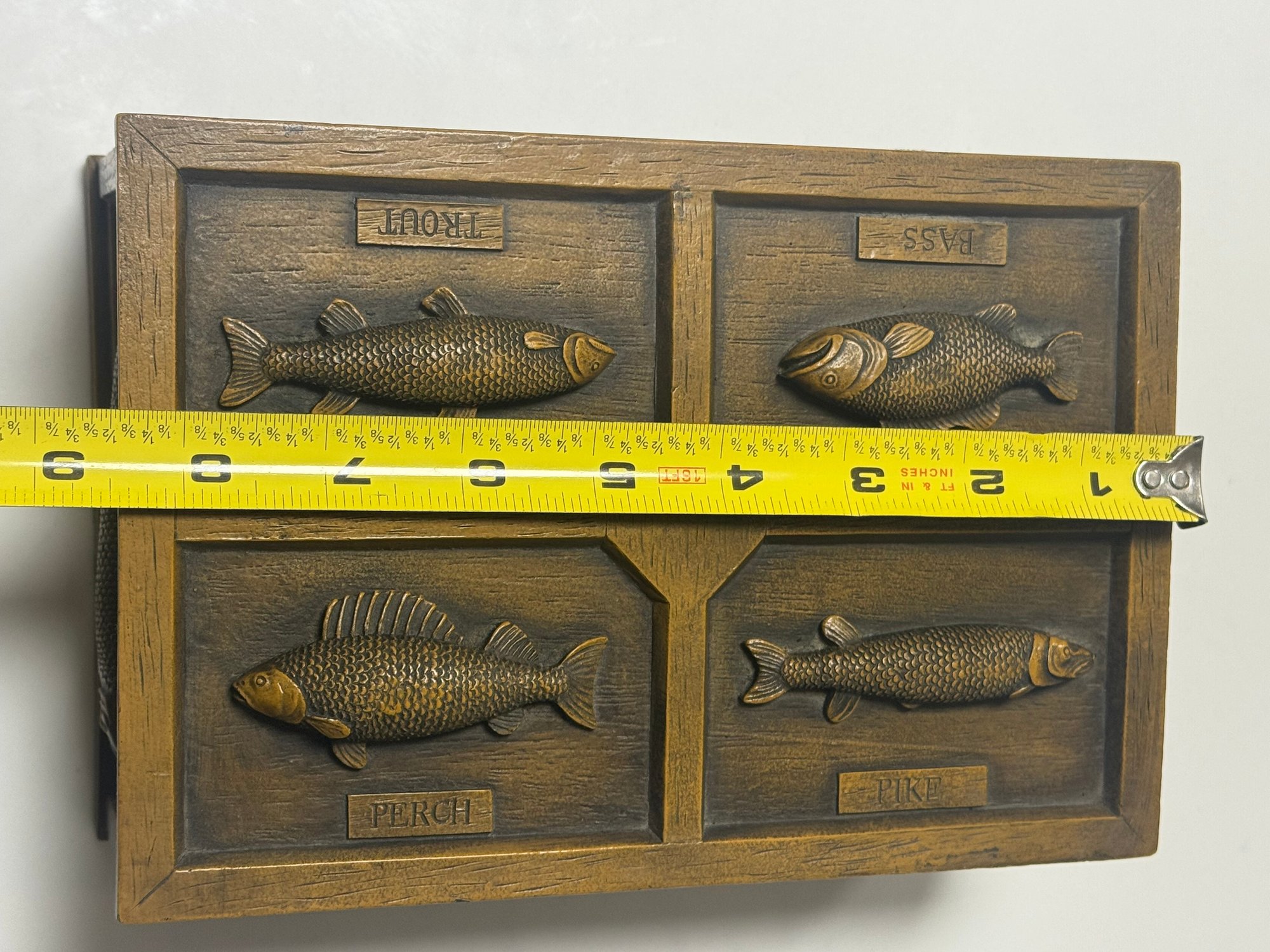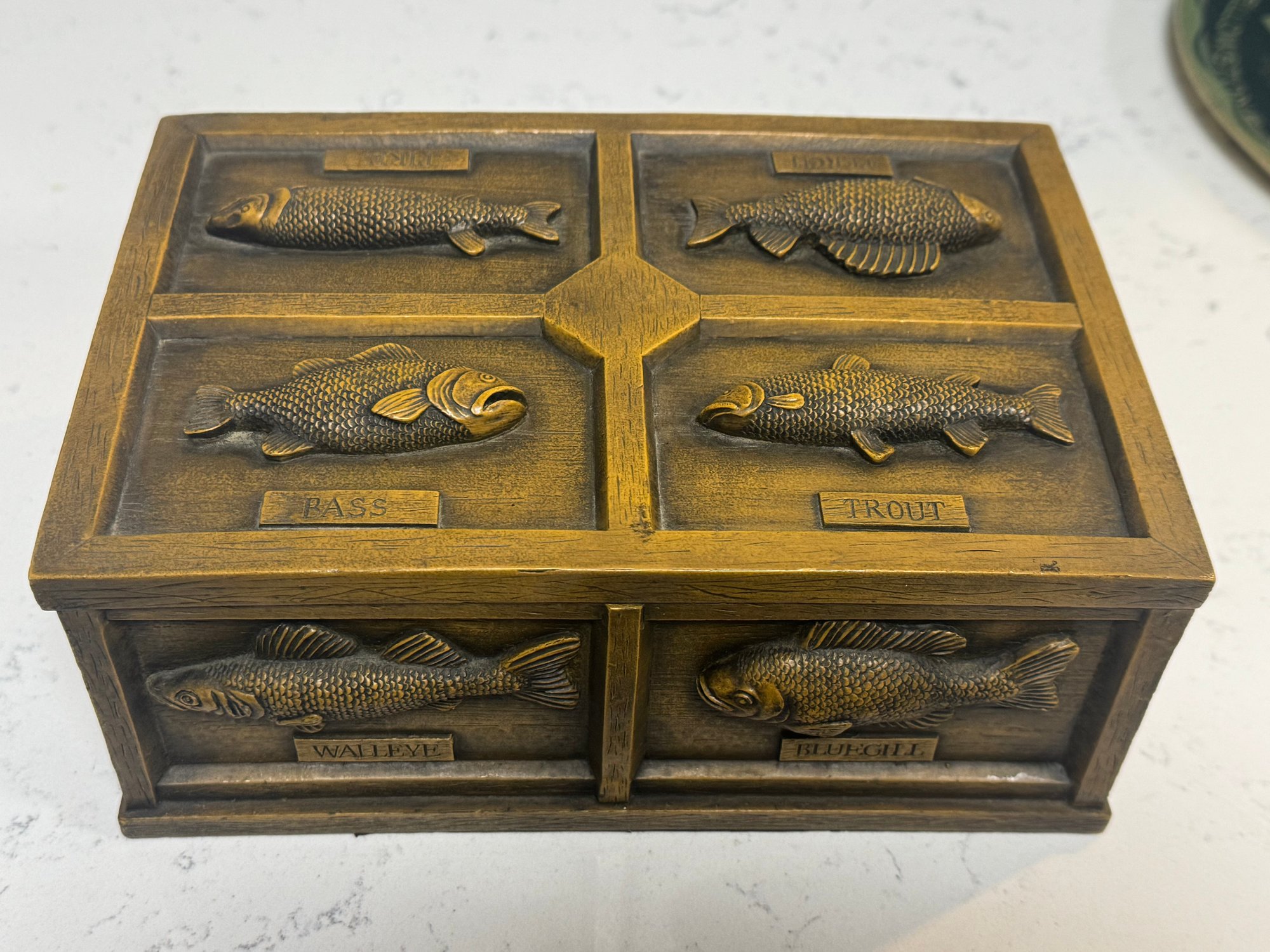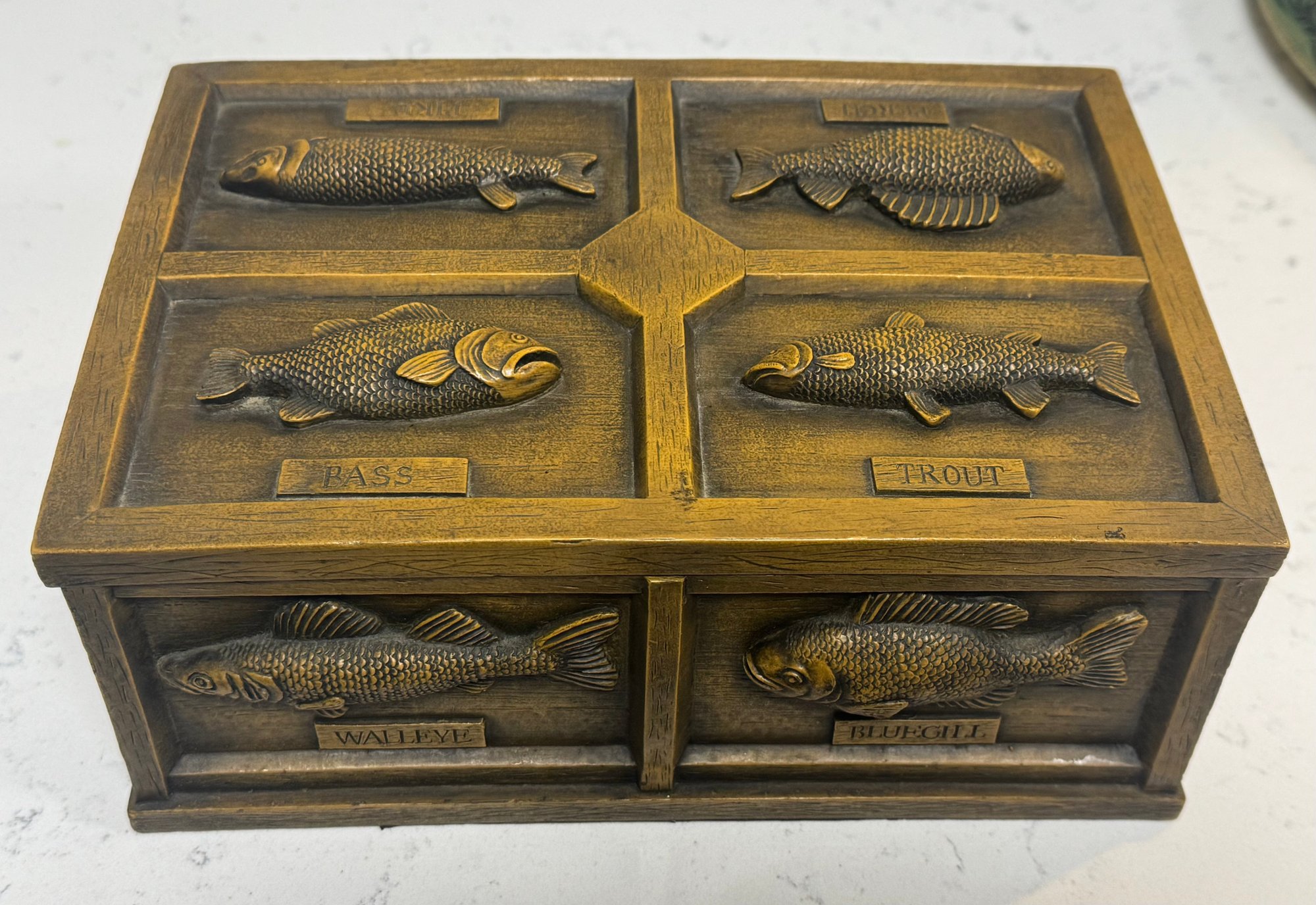 vintage fish, jewelry, trinket box, organizer, brown, resin wood grain