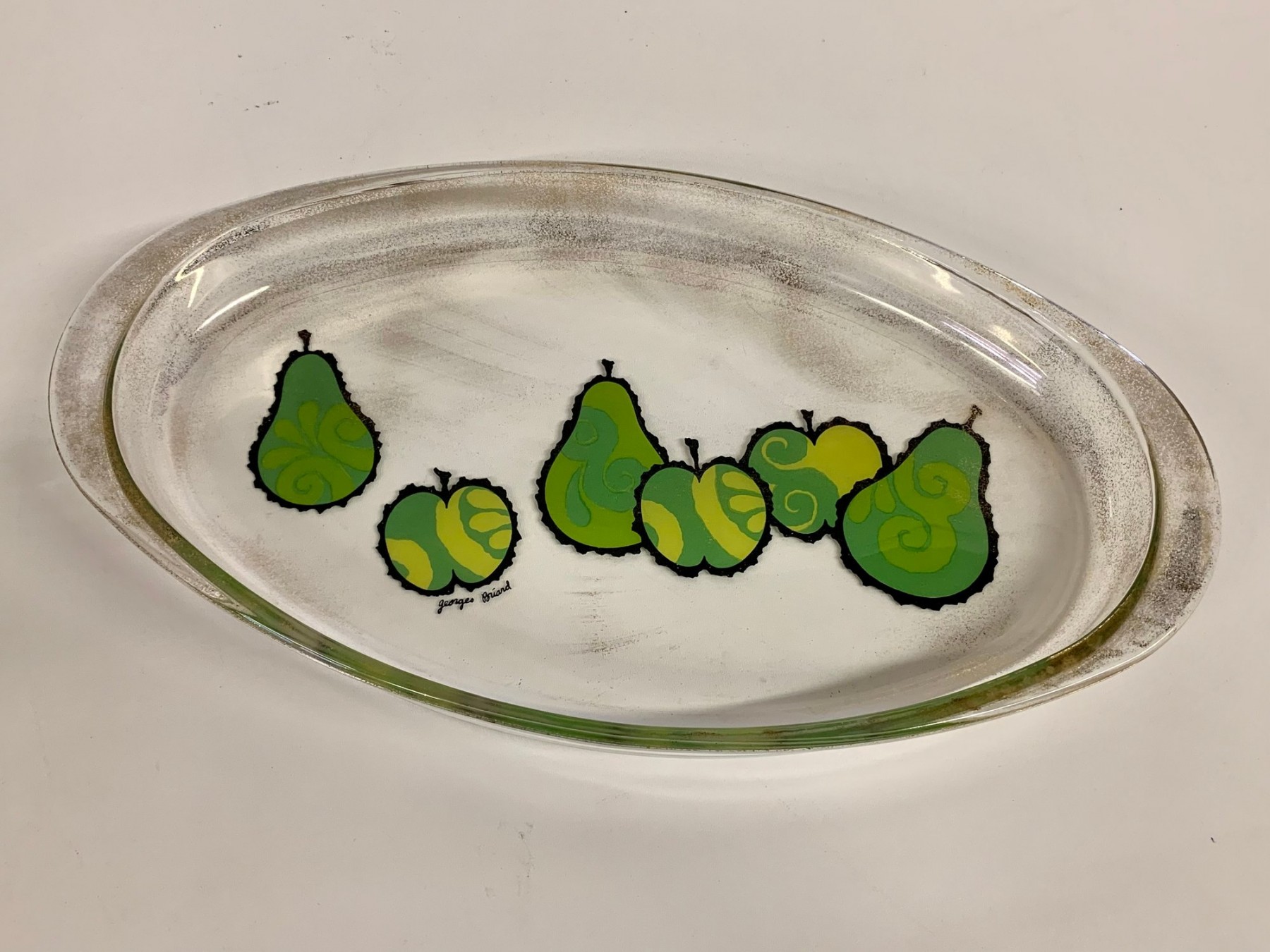 Vintage Georges Briard Mid Century Apple Pear oval glass dish 18’’