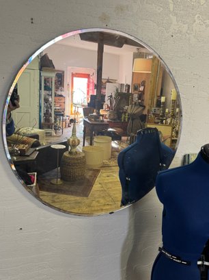 Vintage Large Mirror About 30 Inches With Reinforced Back And Hanging Wire