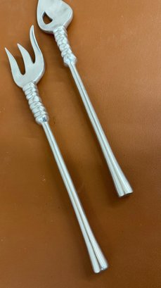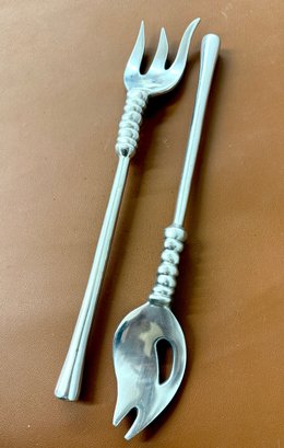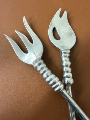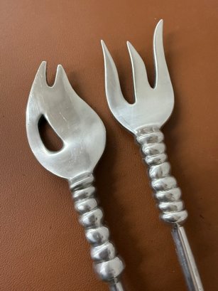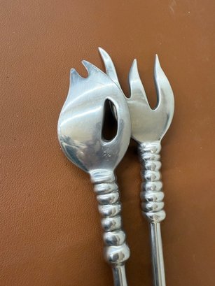 Vintage Sculptural Aluminum Salad Severs, Engraved LUNA, 14 Long X 2.5 Wide