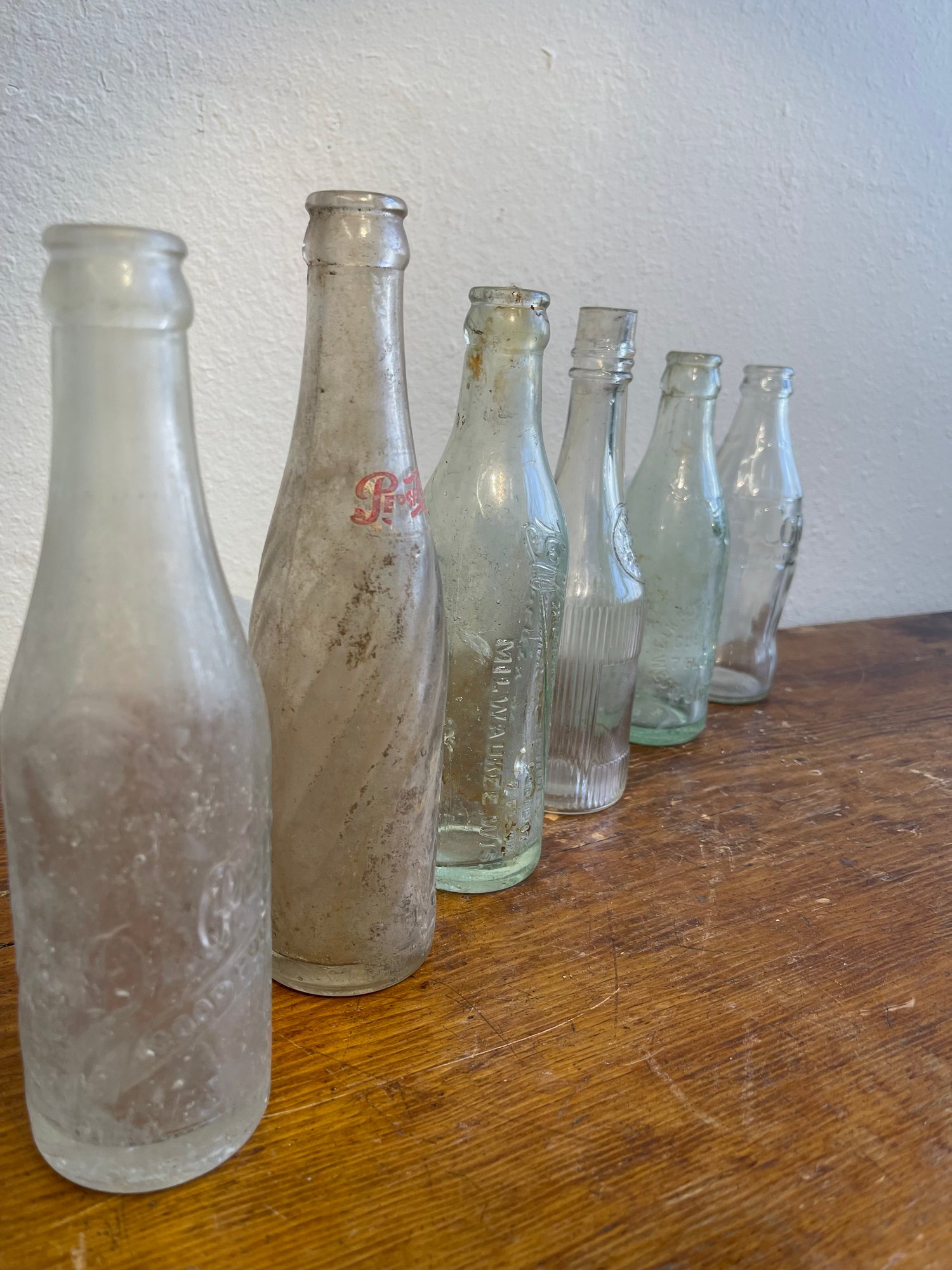 Dr. Pepper, Coke, Pepsi cola, Elk Bottling company( West Point NEB. - very thick glass), Hoffman beverage co.( Milwaukee, Wisconsin) and a ribbed Curtis Bros & co.