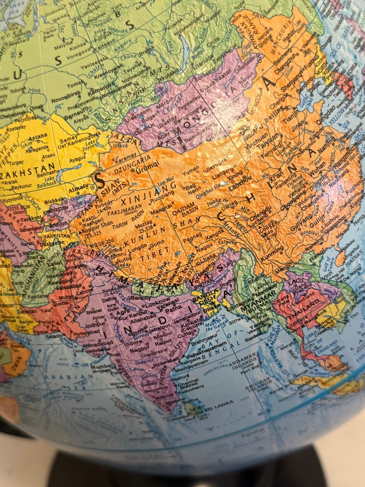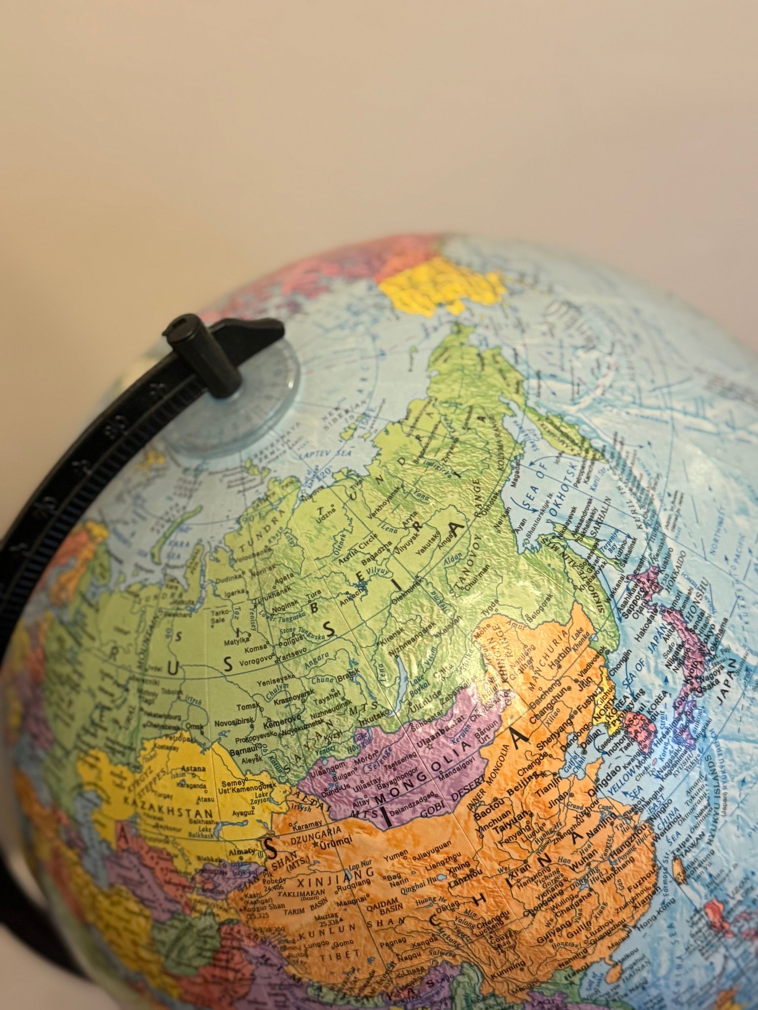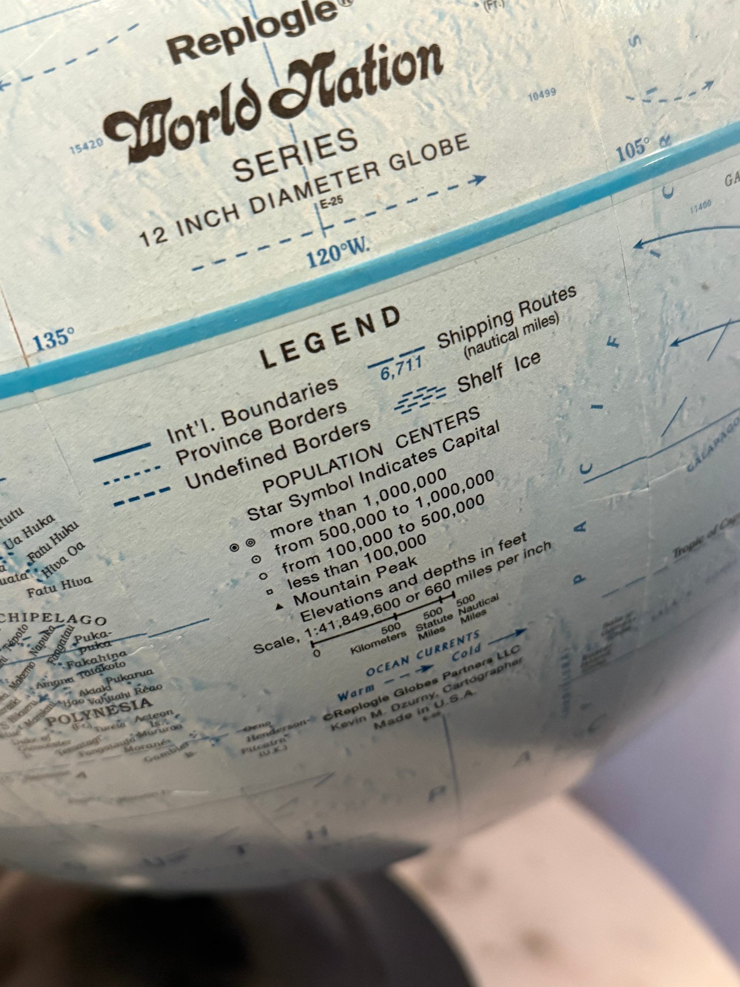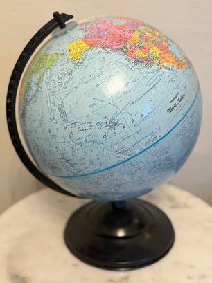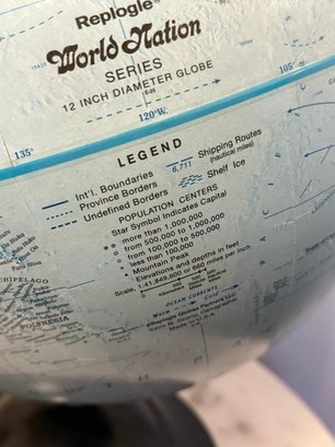 Vintage Replogle Globe, World Nations Series, 12 Inch Globe W/ Black Metal Base And Arc. Near perfect condition!