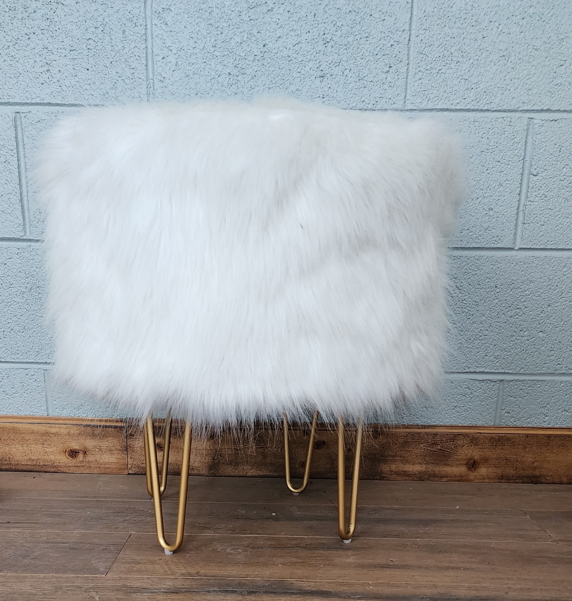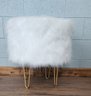 White Furry Footstool On Hairpin Legs. H 20" D 19". In excellent condition.