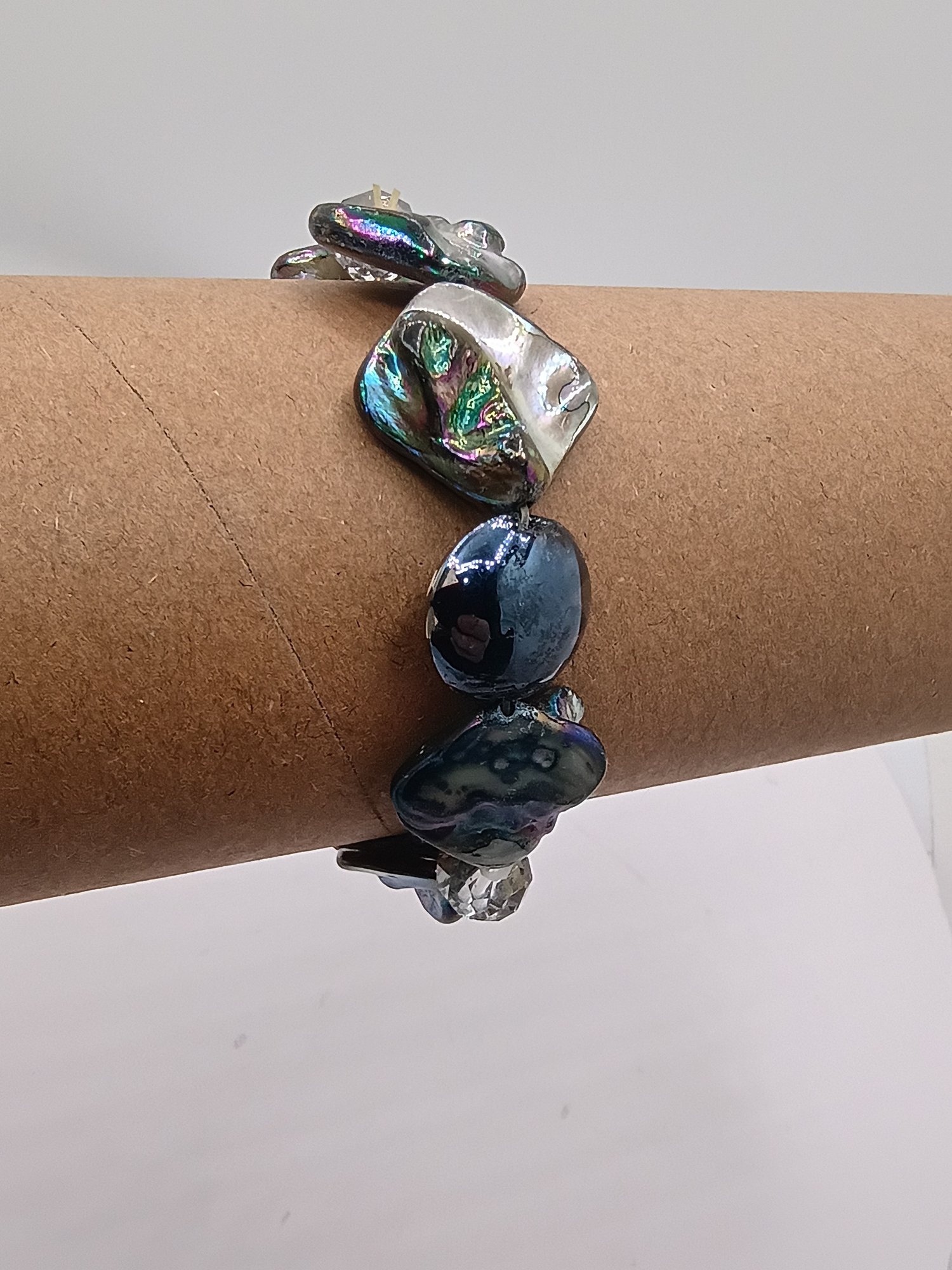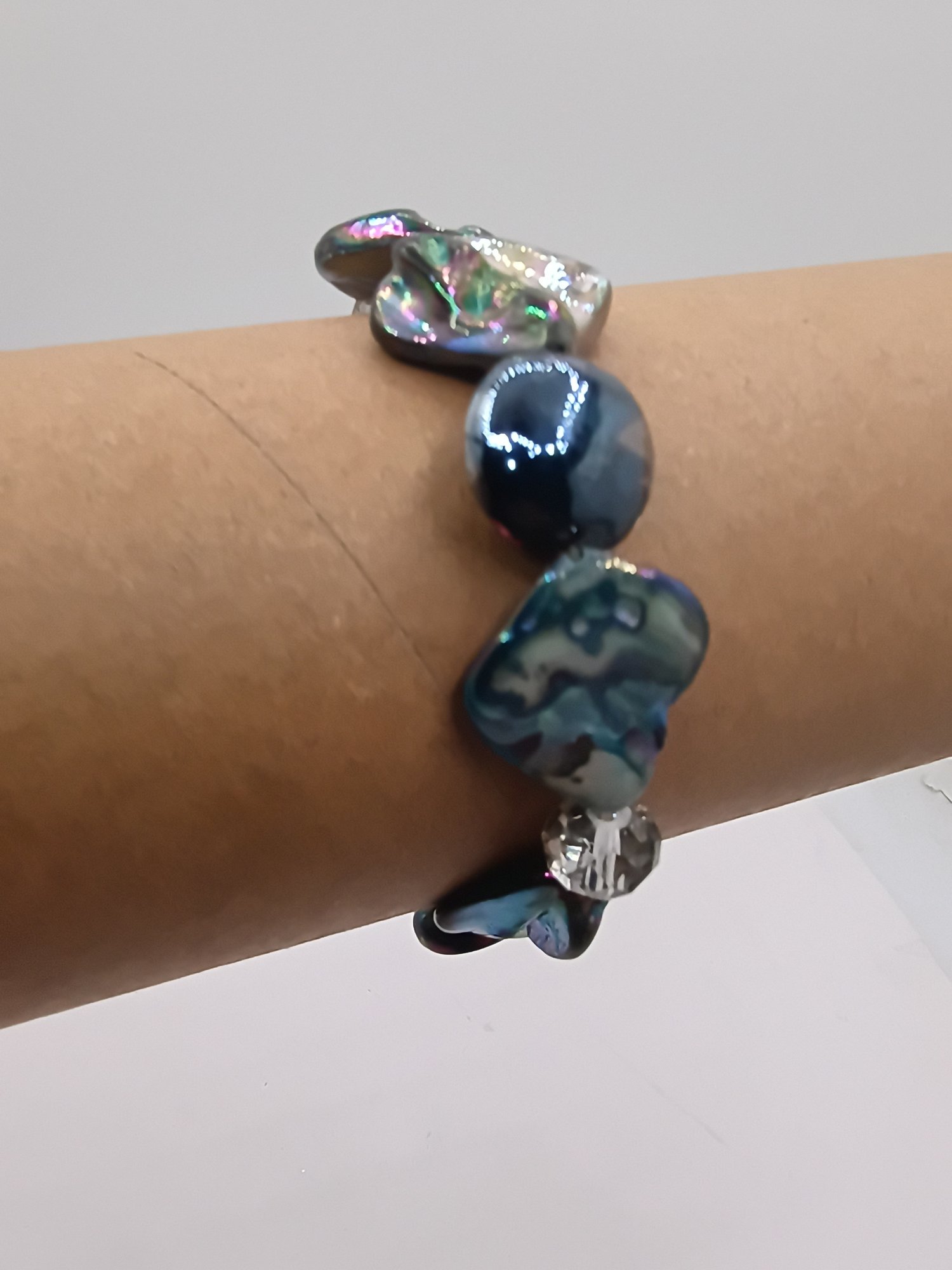 Bracelet Featuring Iridescent Paua Abalone Shell Nuggets And Crystals