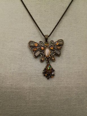 Earthy-toned Butterfly Pendant Necklace