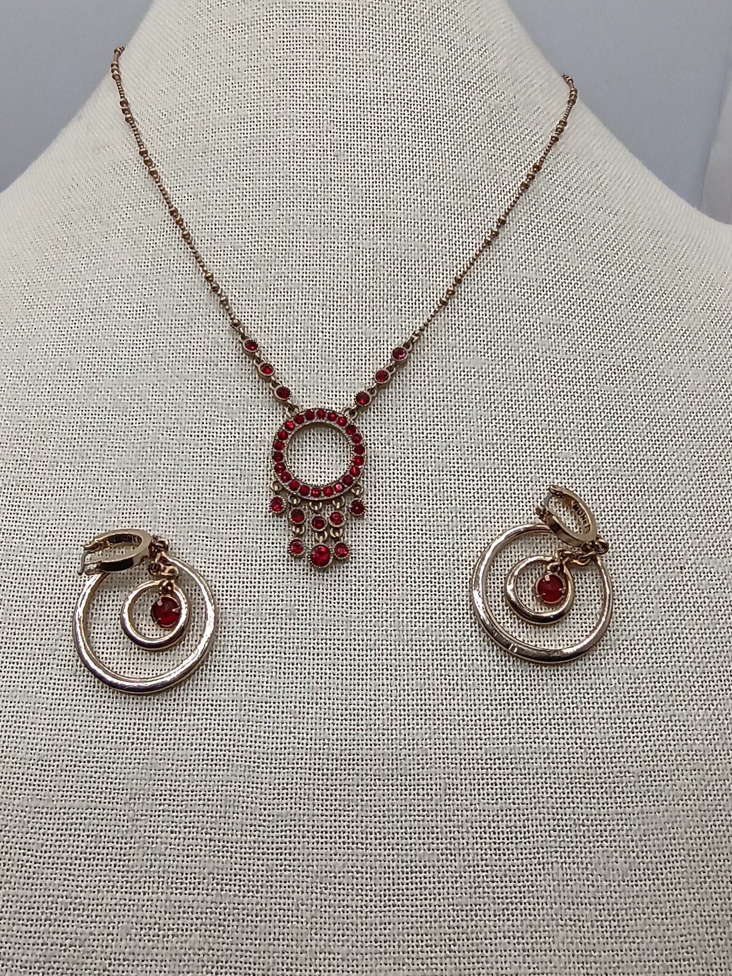 Red Double Circle Earrings & Necklace Set