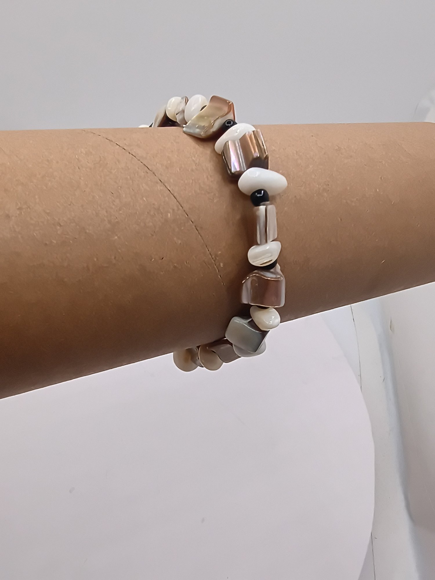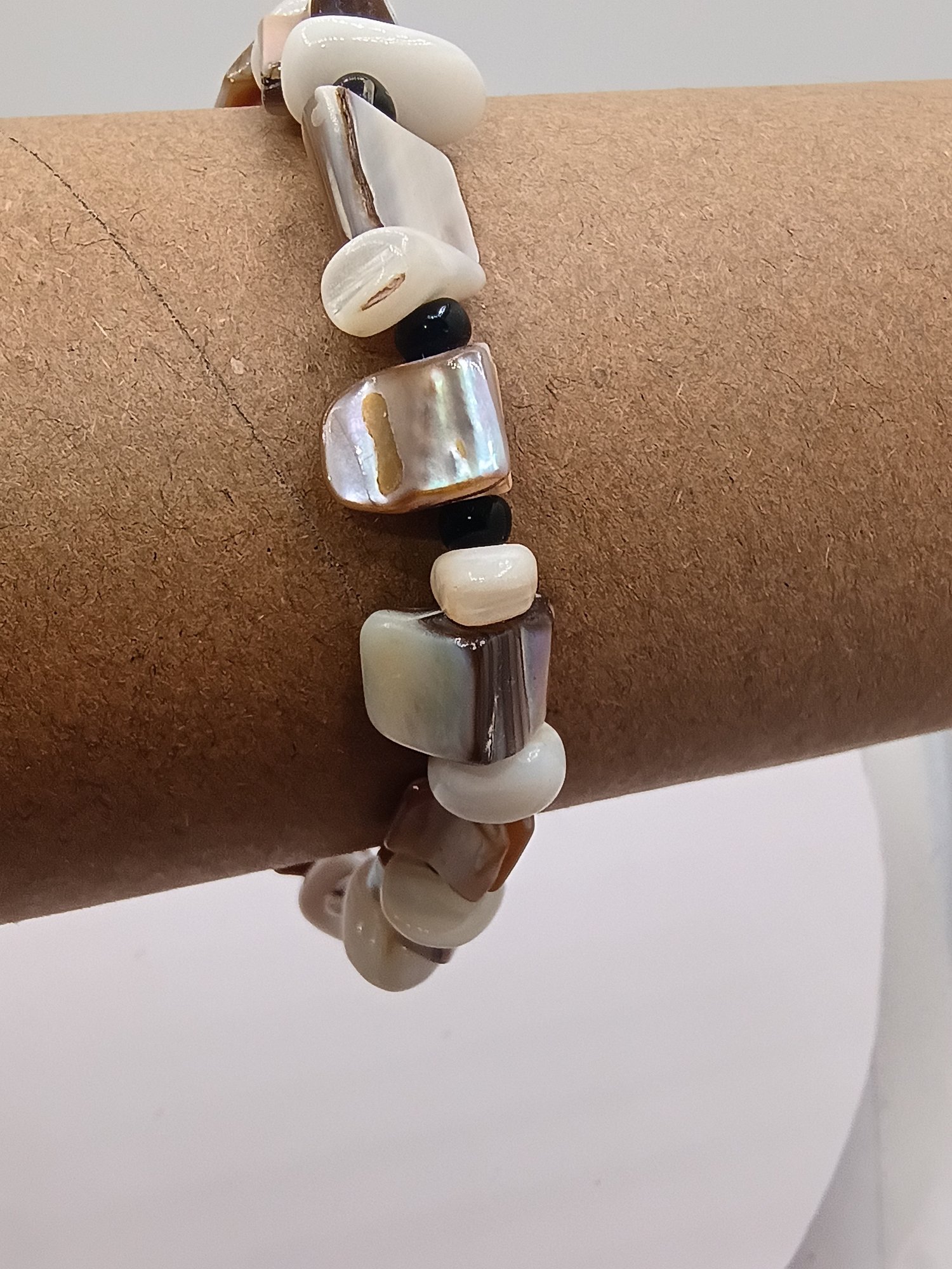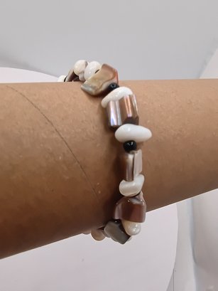 Vintage Abalone / Mother Of Pearl Shell Stretch Bracelet
