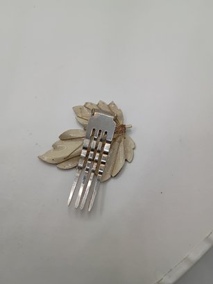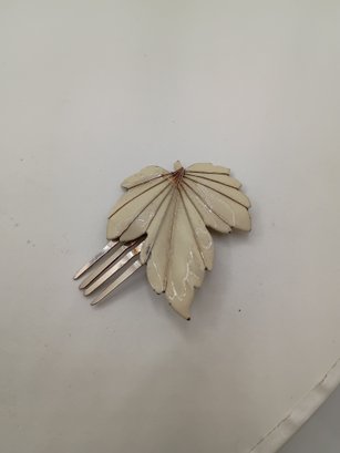 Vintage Jonette Jewelry (J.J.) White Enamel Leaf Brooch