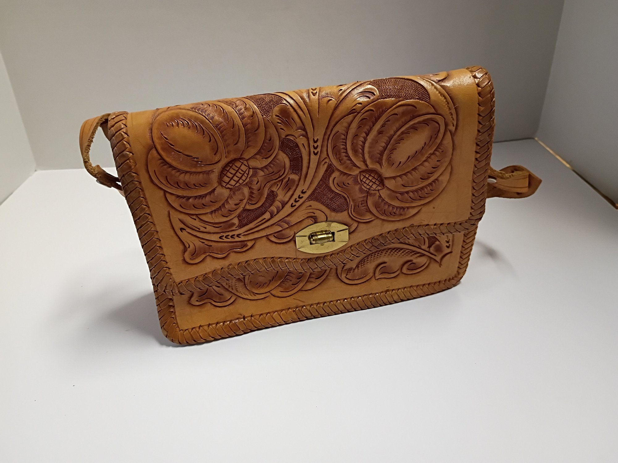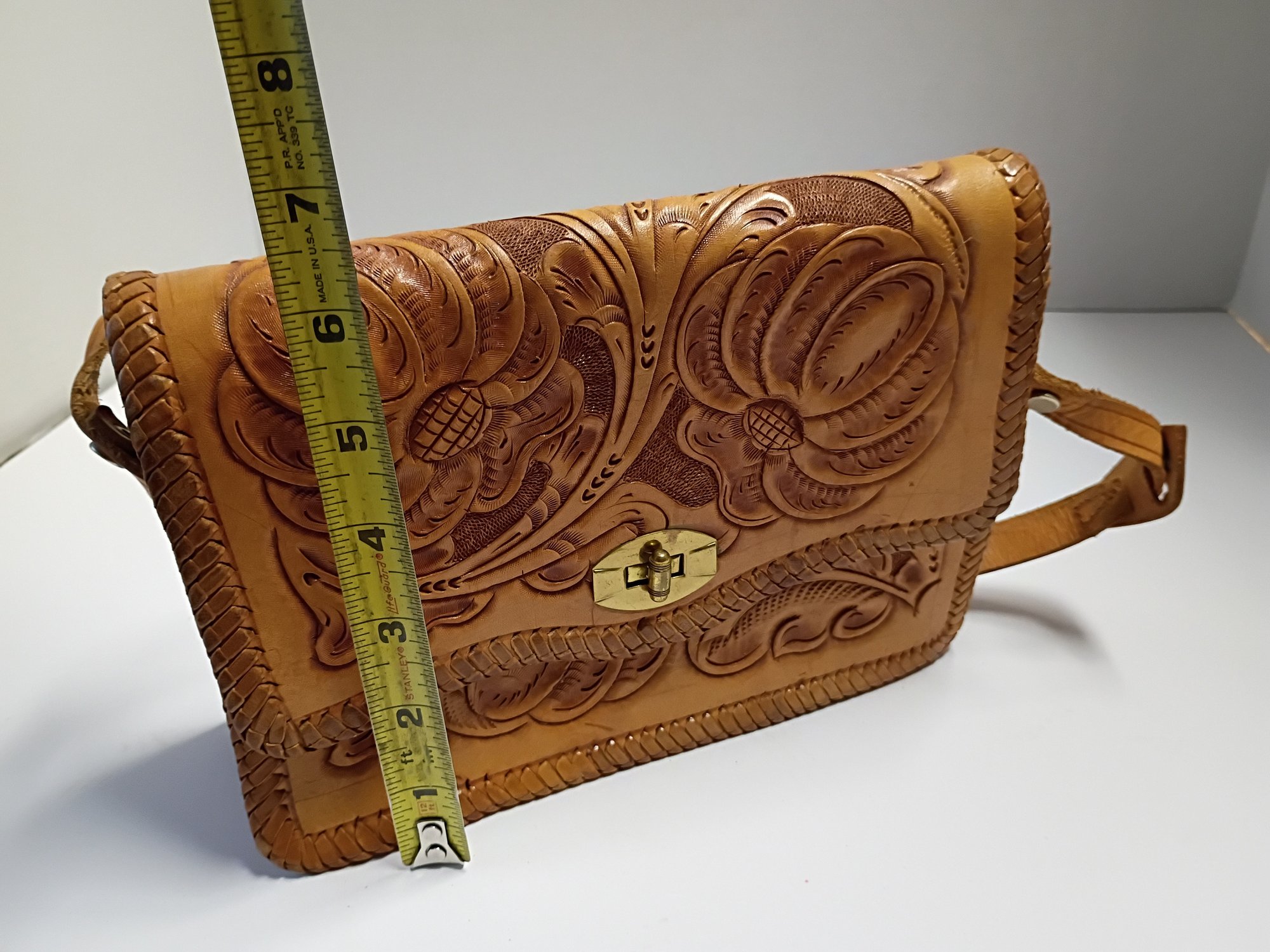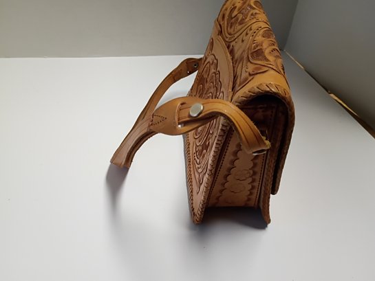 Vintage Mid Century Tooled Leather Shoulder Bag