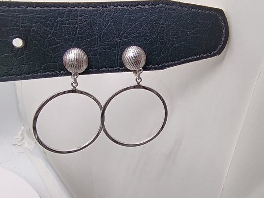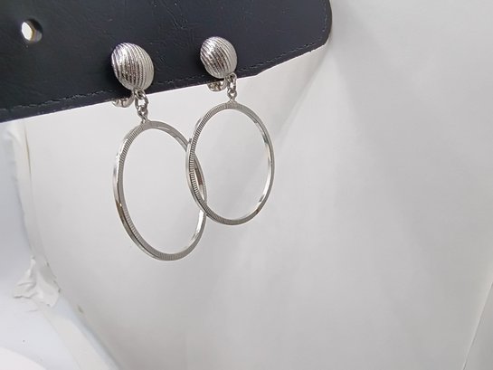 Vintage Monet ? Silver Tone Clip-on Hoop Dangle Earrings