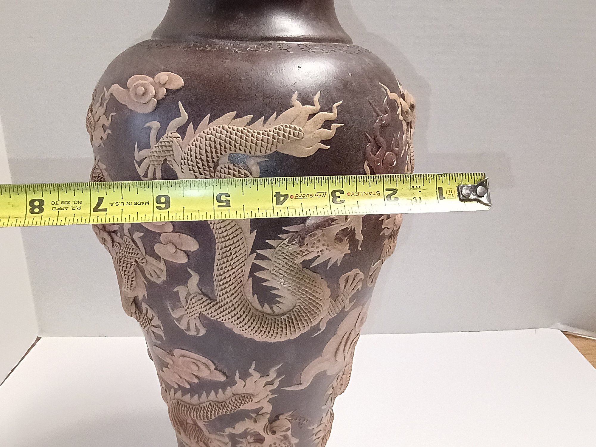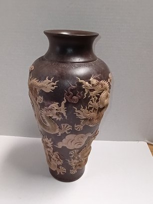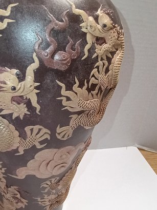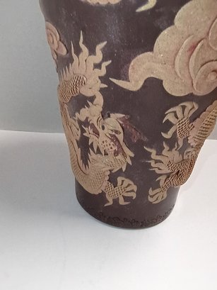 Vintage Yixing Zisha Or Qianlong-style Pottery Carved Dragon Vase